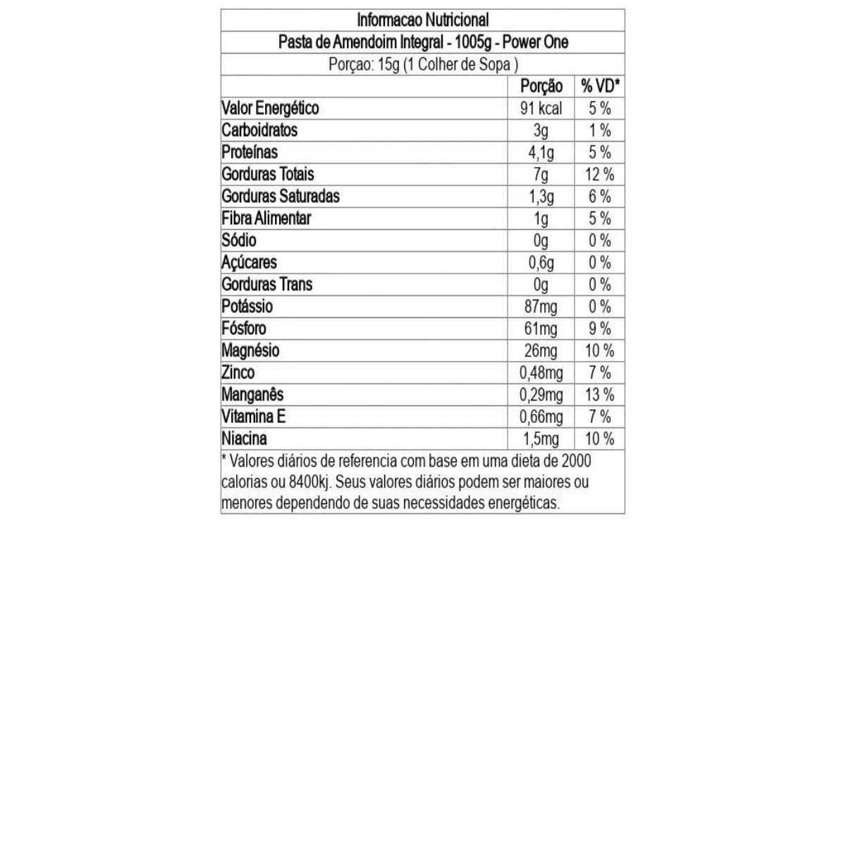 A Pasta de Amendoim Power One fornece 1kg de puro sabor, 100% natural e integral, ideal para ganhar energia, dietas restritivas ou para quem quer comer algo saboroso sem culpa, pois ela é rica em proteínas, possui baixo carboidrato e possui vitaminas E, selênio e fibras.
