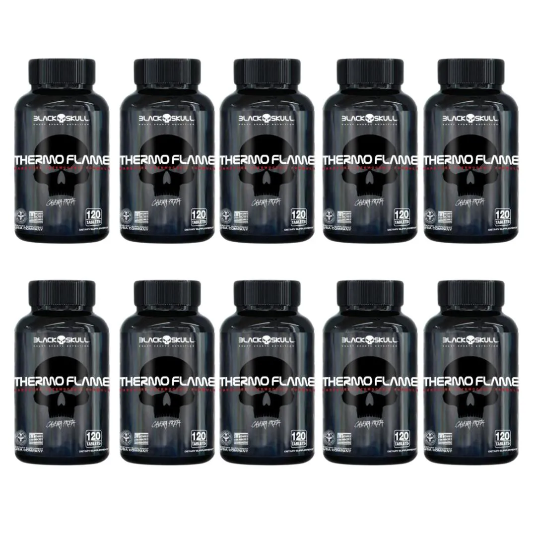 KIT 10X THERMO FLAME TERMOGÊNICO - 120 CAPS CADA - BLACK SKUL 120 Comprimidos SEM Sabor