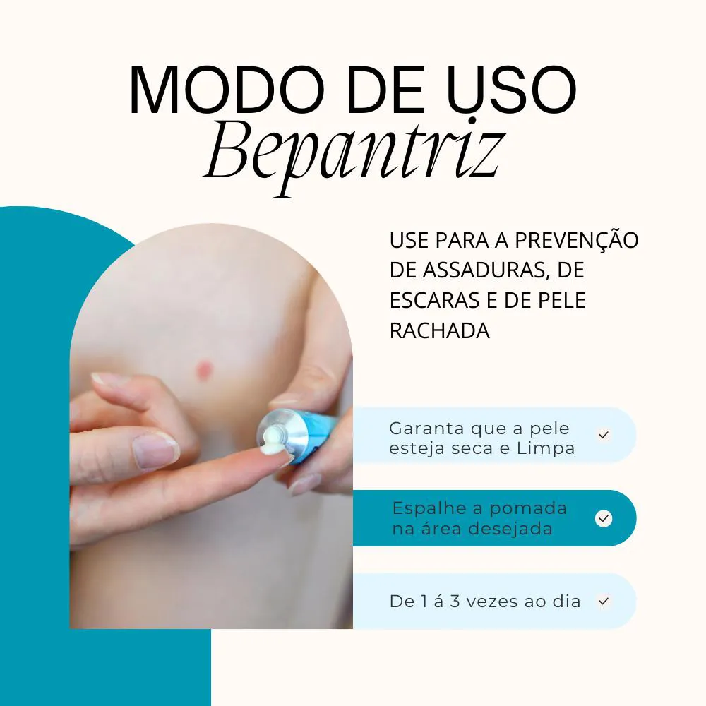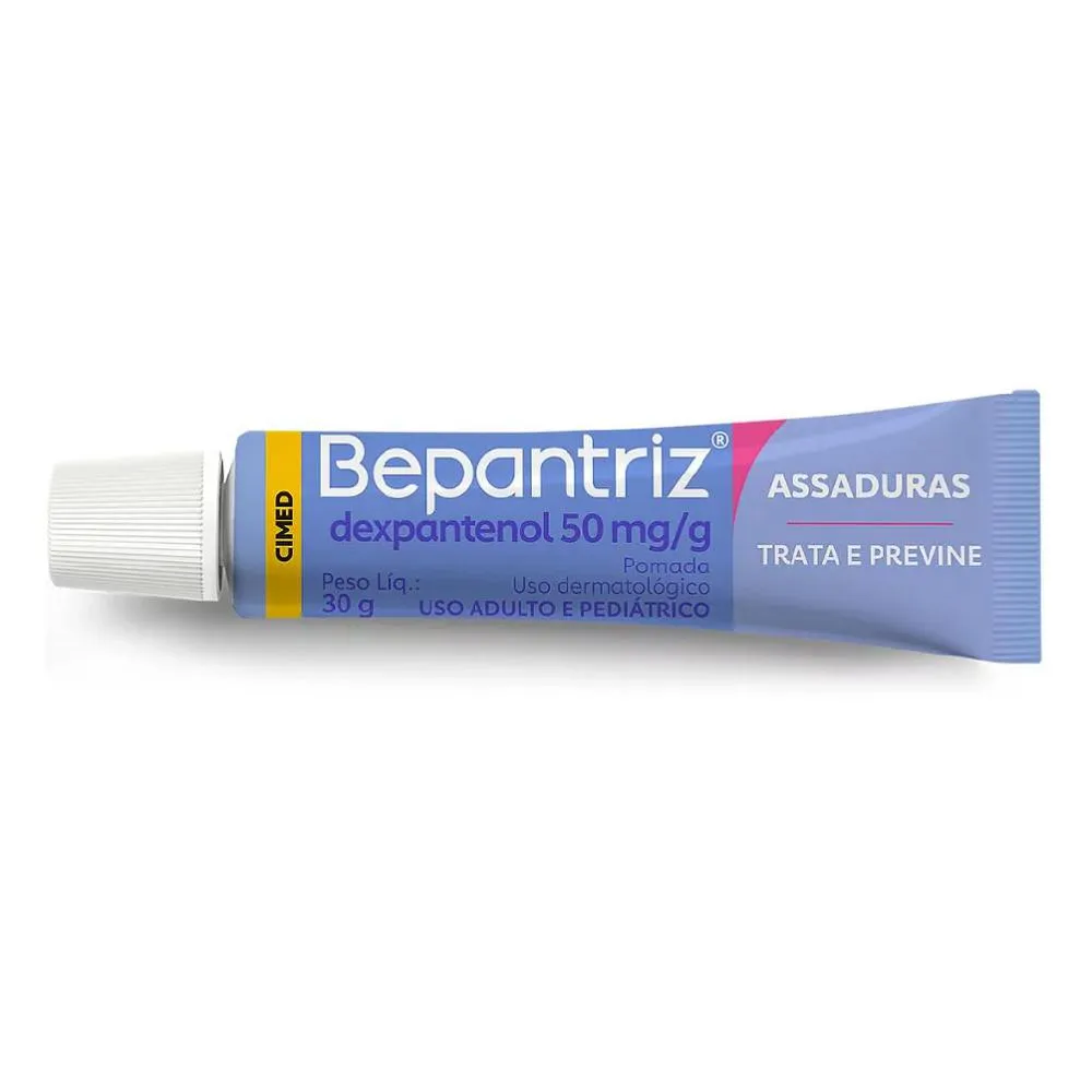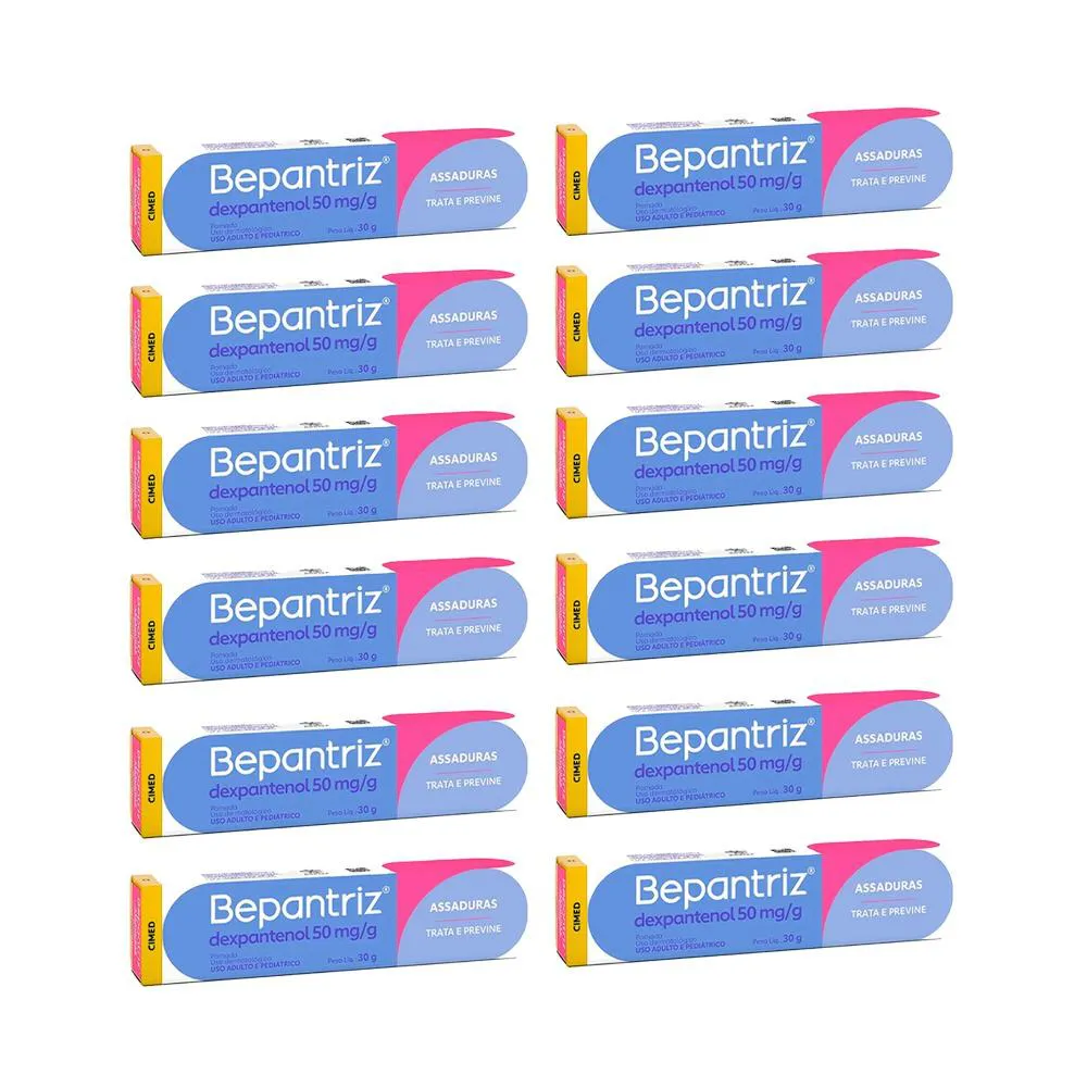 Kit com 12 Pomada Bepantriz Dexpantenol 50mg Dupla Proteção 30g - Cimed Bepantriz® pomada oferece dupla proteção para a pele, especialmente contra as assaduras. Ela contém como princípio ativo o dexpantenol, que está incorporado em uma base oleosa (principalmente lanolina - um agente natural). O dexpantenol protege a pele agindo por dentro: penetra nas camadas internas da pele e é transformado em vitamina B5, que estimula a formação e regeneração natural da pele. A pele fica nutrida e fortalecida.E a lanolina protege por fora: forma uma barreira na pele, protegendo-a das agressões externas, como urina, fezes e ressecamento. Bepantriz® pomada tem fórmula hipoalergênica (reduz o risco de alergias): não possui perfume, corantes e conservantes. Este medicamento é indicado para prevenção e tratamento da dermatite de fraldas (assaduras); prevenção e tratamento das fissuras (rachaduras) de pele e mucosas (mamilos, lábios e região anal); feridas (ferimentos leves e escoriações); e escaras. Não há contraindicação relativa a faixas etárias. Este medicamento pode ser utilizado durante a gravidez desde que sob prescrição médica ou do cirurgião-dentista. MODO DE USO: A pomada deve ser aplicada diretamente sobre a pele limpa. SOBRE A LOJA: Somos a rede de farmácias mais antiga de São José dos Pinhais, atuando no ramo farmacêutico desde 1990 com comprometimento à qualidade e satisfação do cliente. É um prazer compartilhar os nossos valores e as nossas conquistas com quem confia no nosso trabalho! Imagens dos Produtos são Meramente Ilustrativas. Todas as Informações Divulgadas são de Responsabilidade Exclusiva do Fabricante/fornecedor.