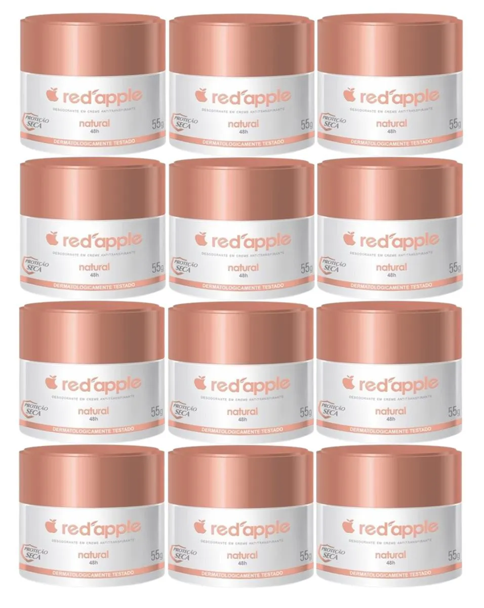 Kit 12 Desodorante Red Apple Natural Em Creme 55g
