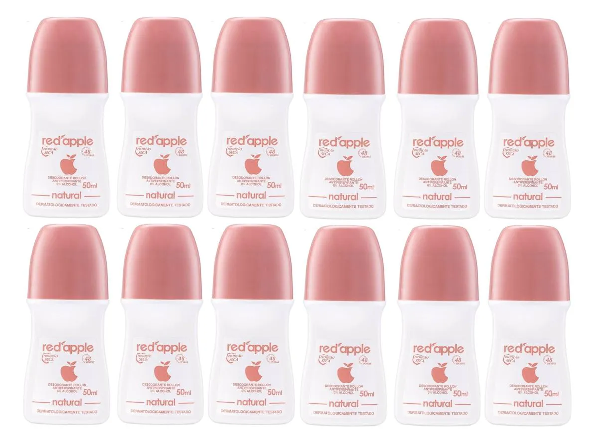 Kit 12 Desodorante Red Apple Roll On Natural 50ml