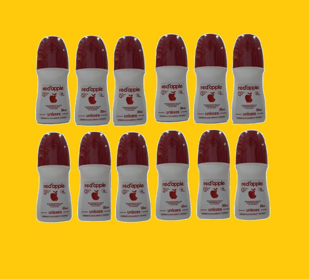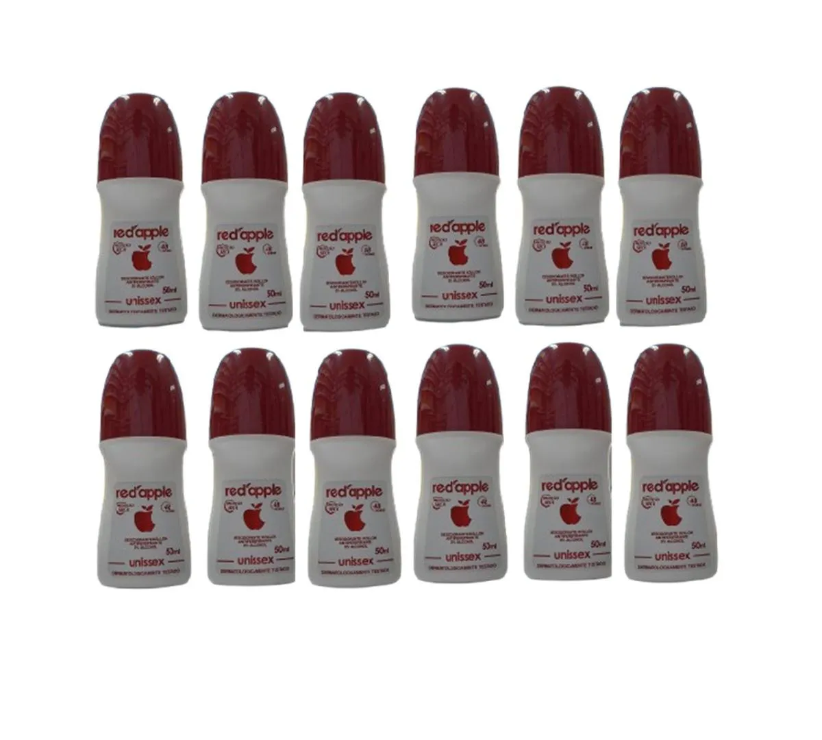Kit 12 Desodorante Red Apple Roll On Unissex 50ml