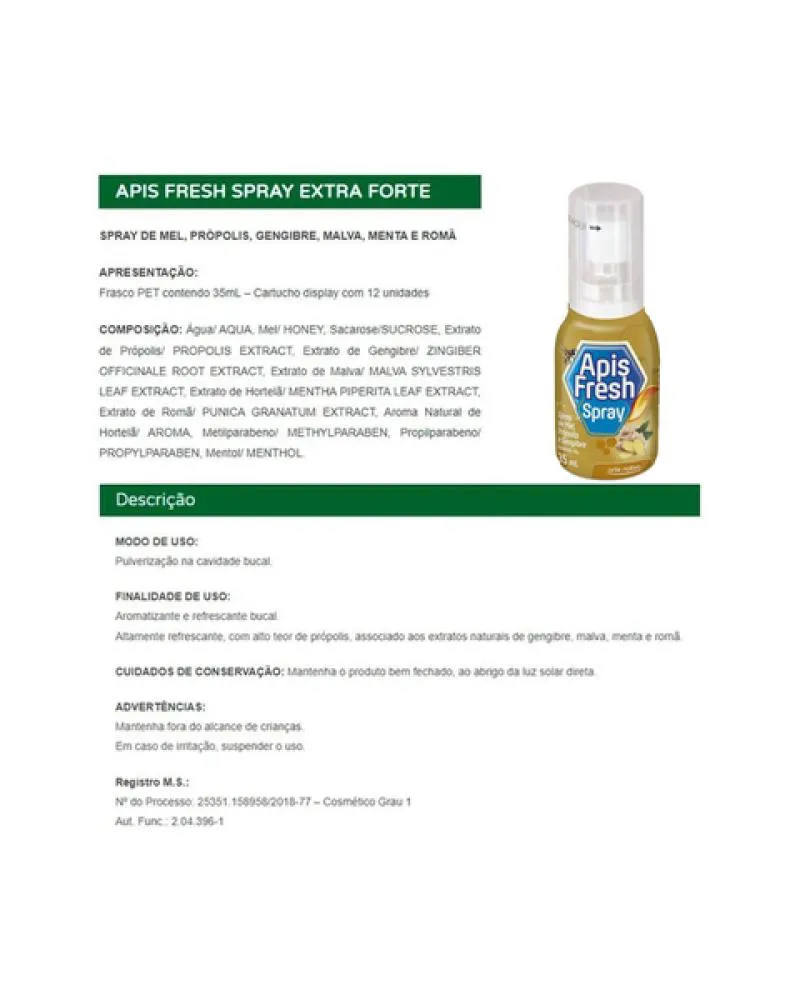 Kit 12 Unidades Aromatizante Bucal Apis Fresh spray Mel e Gengibre 35ml Arte Nativa -