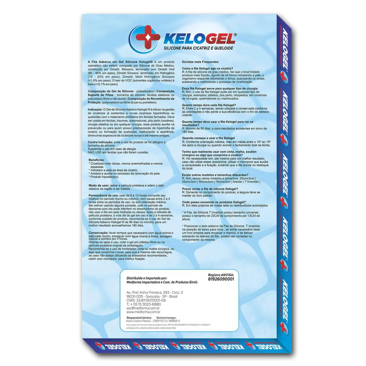 - Gel de Silicone: Lavar com água morna e sabonete neutro, secar naturalmente à sombra por 4 horas. Usar modelador, cinta ou malha cirúrgica para melhor fixação, cobrindo com micropore. Vida útil de 2 a 4 semanas após retirada da película protetora. Recomenda-se uso contínuo de 90 a 180 dias para melhores resultados.