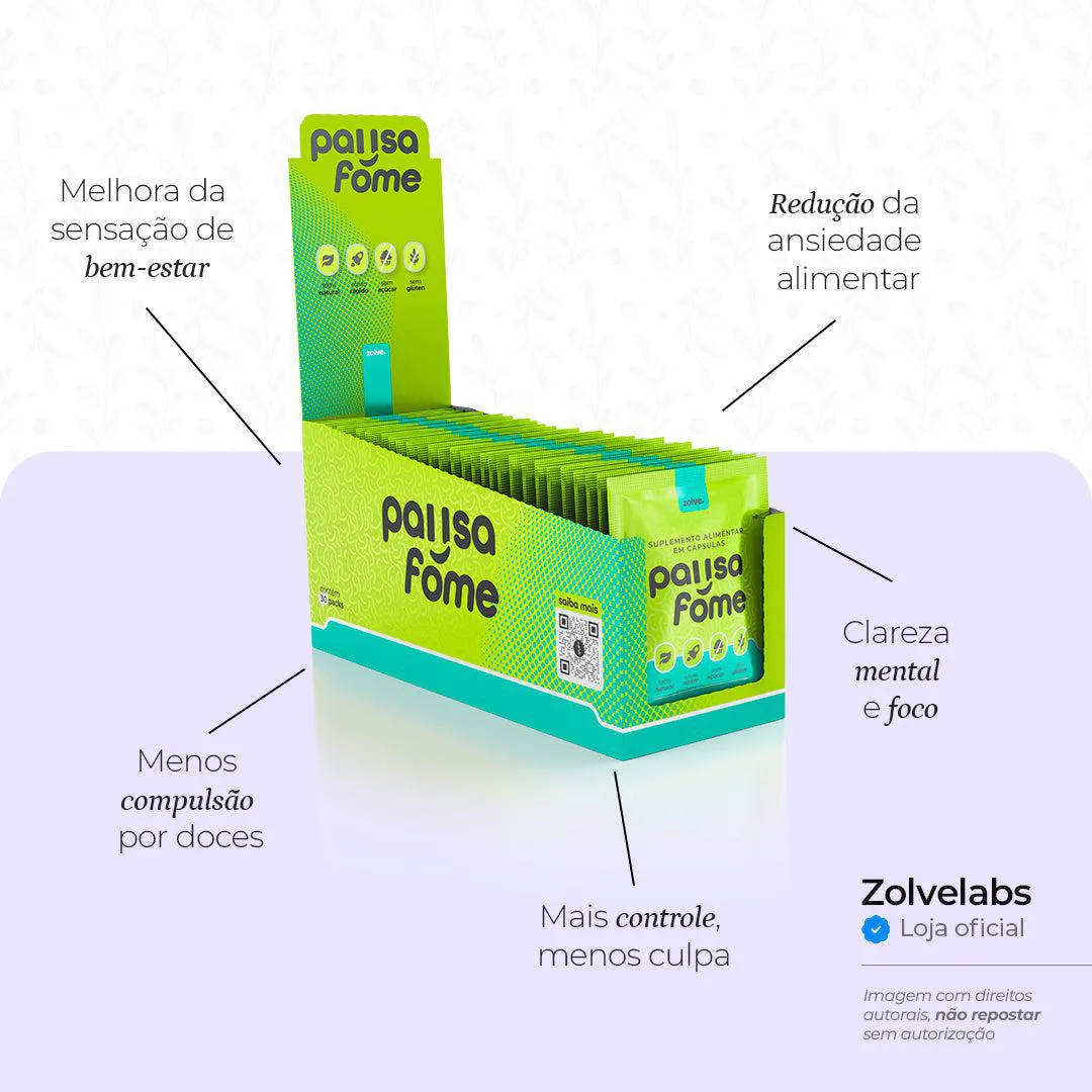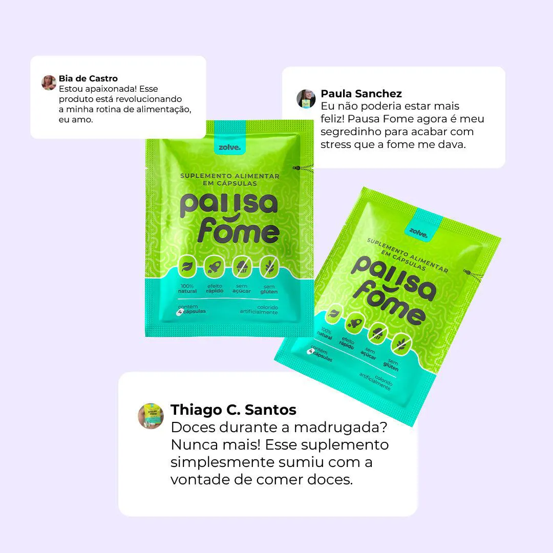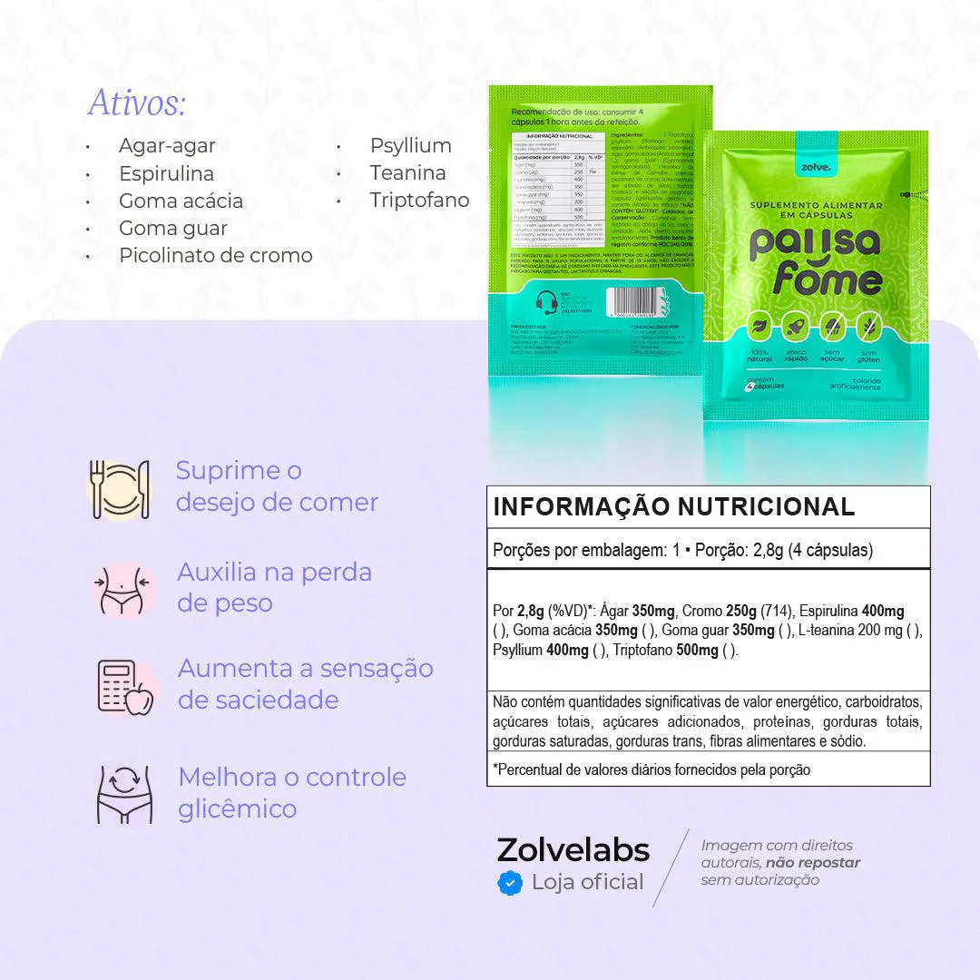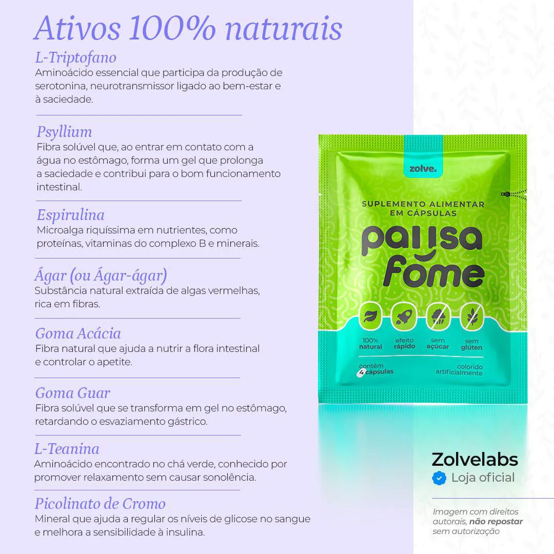 Pausa: Psyllium, spirulina, picolinato de cromo, L-teanina e triptofano.