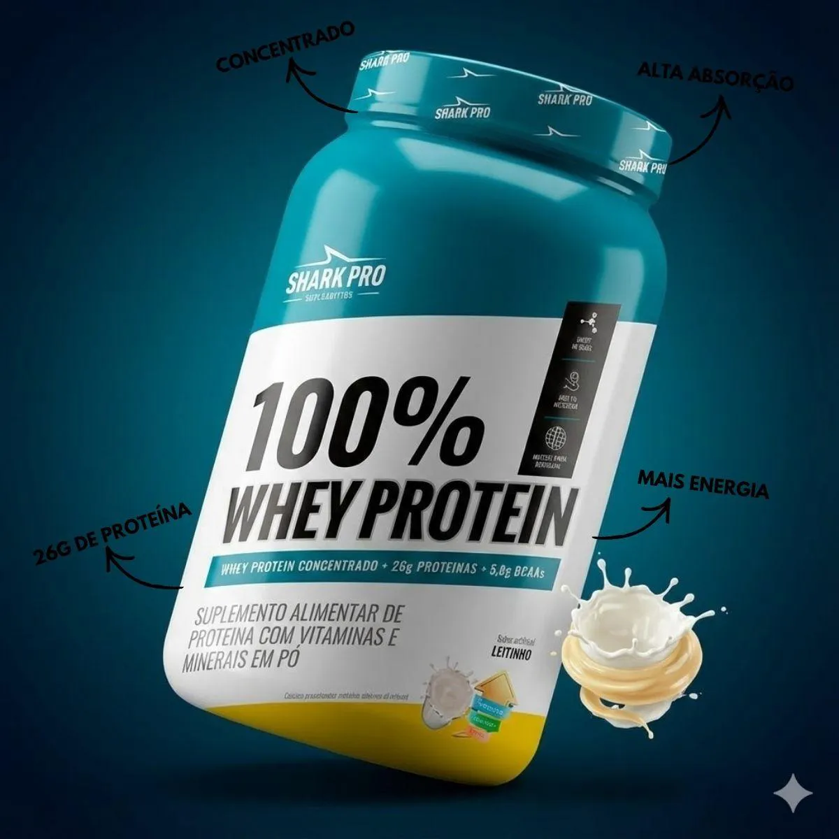 O 100% Whey Protein sabor leitinho da Shark Pro foi desenvolvido para quem busca suavidade no sabor, qualidade na composição e praticidade no dia a dia. Com perfil equilibrado e textura agradável, esse suplemento em pó é ideal para complementar a ingestão diária de