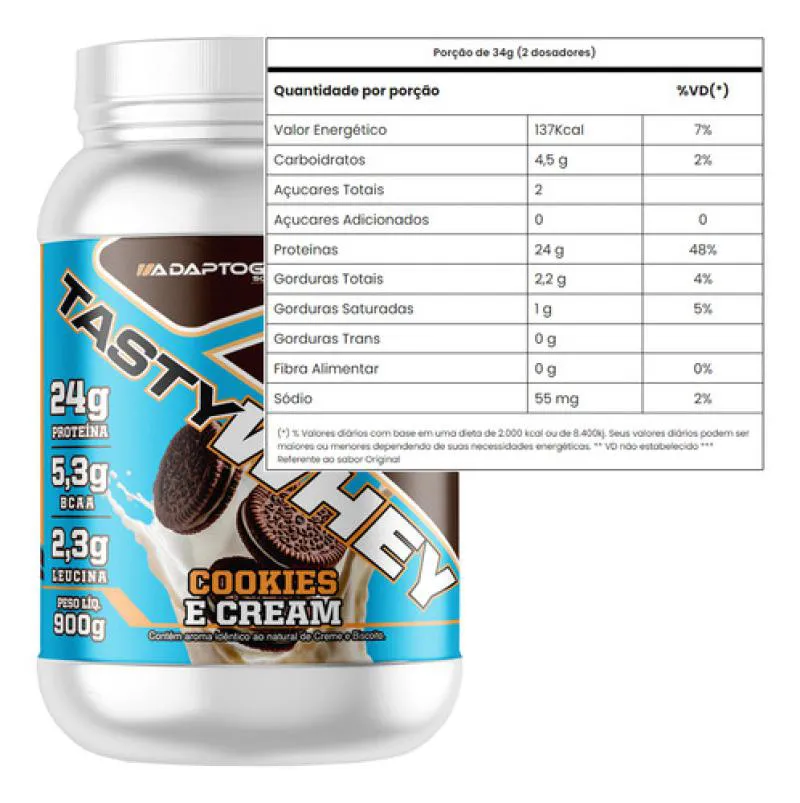 KIT 2 ADAPTOGEN WHEY TASTY 3W GOURMET SABOR COOKIES E CREAM