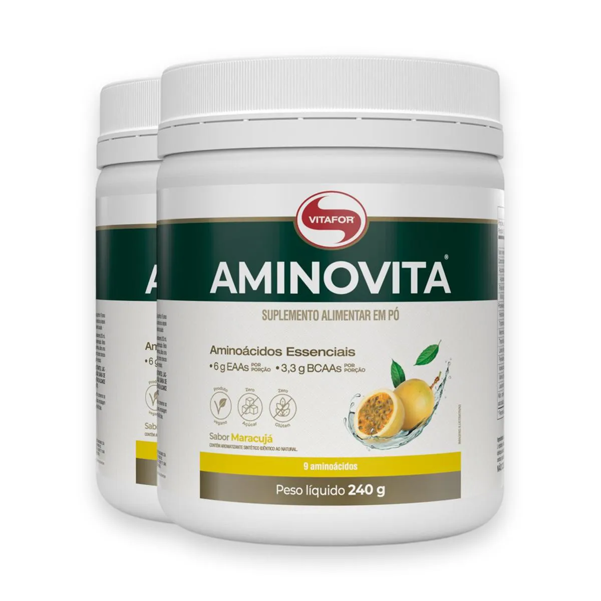Kit 2 Aminovita Vitafor Vegano 240g MaracujáAMINOVITA é um suplemento alimentar composto por 9 aminoácidos de origem vegetal: Leucina, Valina, Isoleucina,