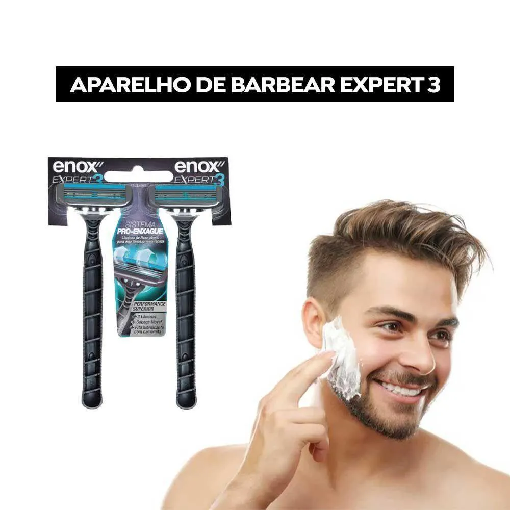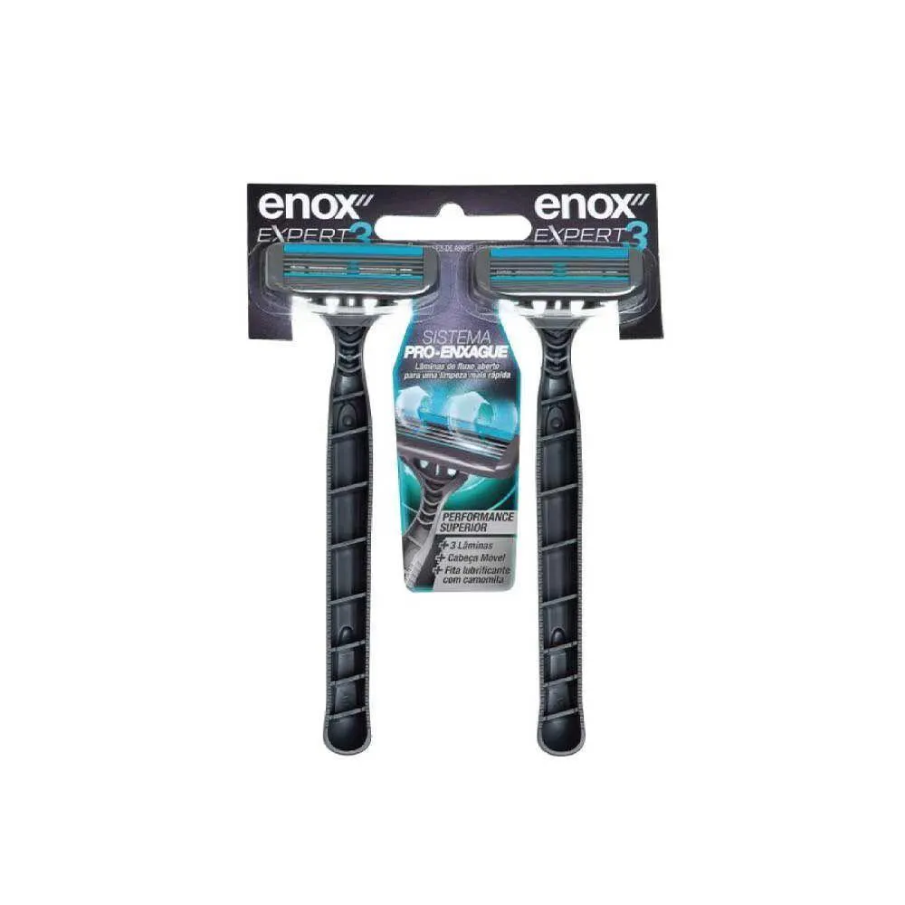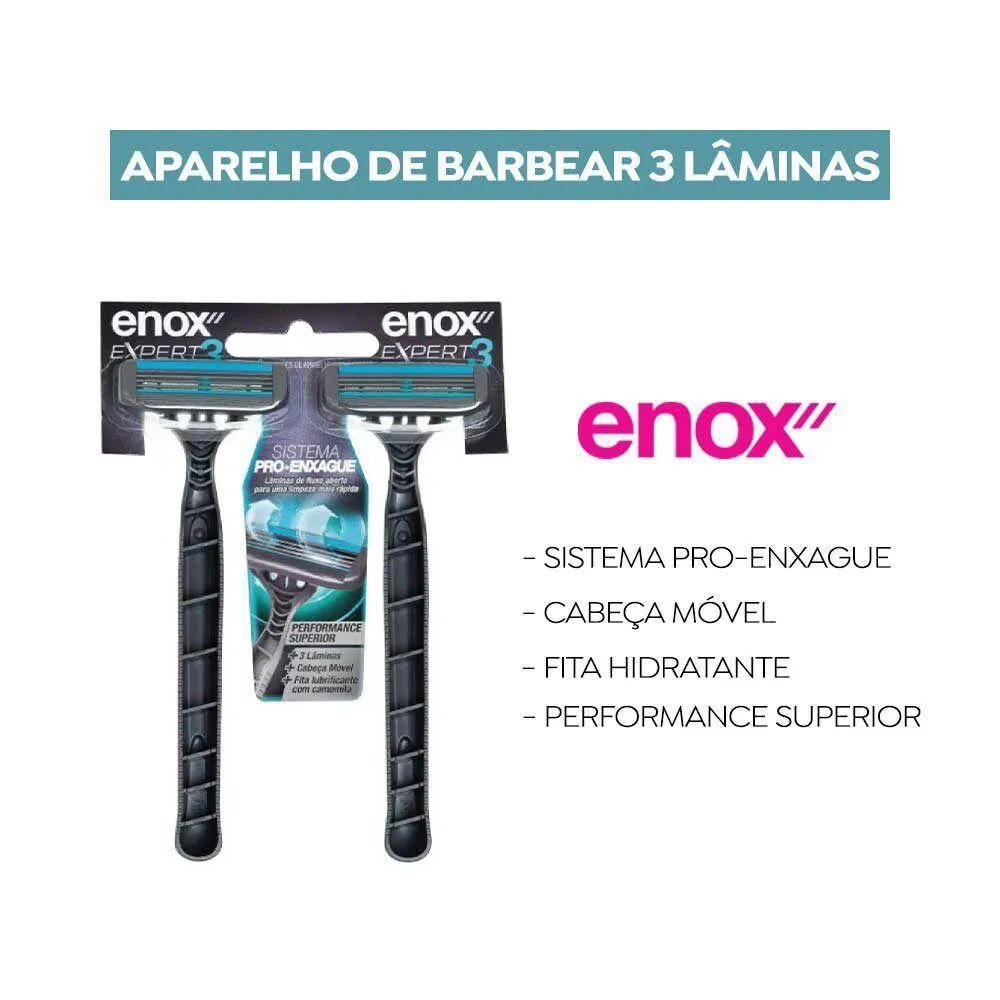 Kit 2 Aparelho de Barbear Descartável Barbeador 3 Lâminas Enox ExpertO Kit de