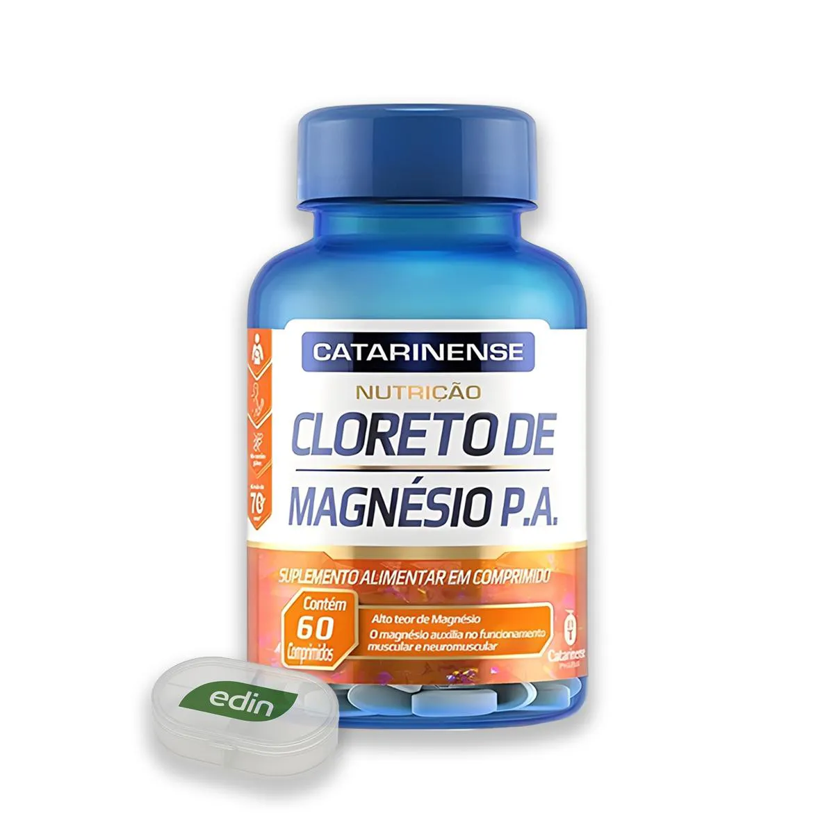 Kit 2 Cloreto de Magnésio P.A. 60 Comprimidos Catarinense + Porta Cápsulas Características do produto: