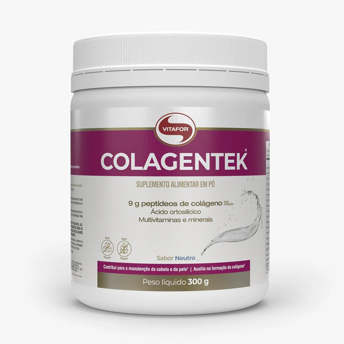 Kit 2 Colagentek Vitafor 300g Neutro COLAGENTEK é um suplemento alimentar à base de colágeno hidrolisado. Diferenciais: - Contém 9g de proteína de colágeno por porção.