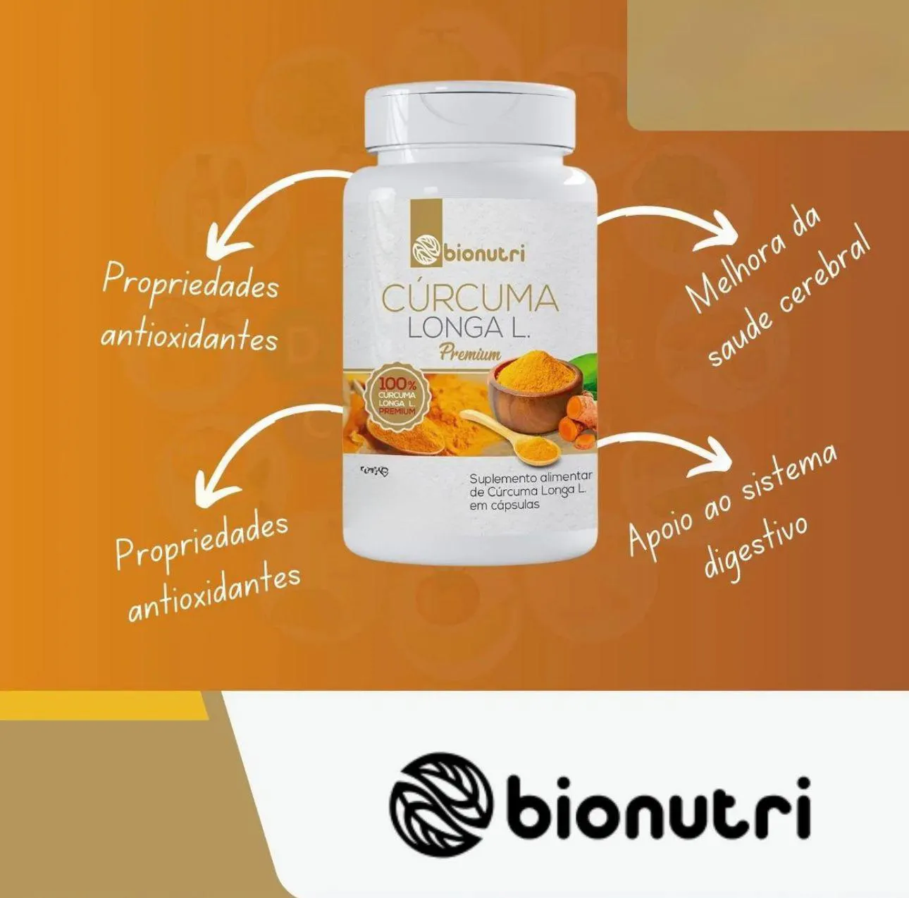 Cúrcuma Longa L. Premium 120 Cápsulas 500mg Bionutri - Potente Ação Anti-inflamatória e antioxidante A Cúrcuma Longa, também conhecida como açafrão-da-terra, é um dos mais poderosos suplementos naturais que a ciência moderna destaca por seus benefícios incríveis à saúde. Este produto de alta qualidade da Bionutri oferece uma dose concentrada de 500mg por cápsula, ajudando você a aproveitar ao máximo os benefícios da cúrcuma no seu dia a dia. Características do Produto: - Forma de Apresentação: Cápsulas práticas e fáceis de ingerir, permitindo a dosagem perfeita para o seu dia. - Quantidade Total: 120 cápsulas, fornecendo um suplemento para dois meses de uso contínuo. - Concentração por Cápsula: Cada cápsula contém 500mg de extrato puro de Cúrcuma Longa L. - Porção Recomendada: Cada porção é composta por 2 cápsulas, totalizando 1000mg de cúrcuma por dose diária. Ingredientes: Composição simples e natural, contendo apenas o extrato de Cúrcuma Longa L., sem adição de ingredientes artificiais. Informação Nutricional Detalhada: - Porção: 2 cápsulas (1g) - Quantidade de Cúrcuma Longa: 1000mg por porção diária, garantindo uma dose eficaz de suporte antioxidante e anti-inflamatório. - Valores Diários de Referência: Não especificados, pois variam de acordo com as necessidades nutricionais individuais. Principais Benefícios: - Poderoso Anti-inflamatório Natural: A Cúrcuma Longa é amplamente conhecida por suas propriedades anti-inflamatórias, ajudando a combater processos inflamatórios crônicos no organismo. - Ação Antioxidante Eficaz: Combate os radicais livres, protegendo suas células contra danos oxidativos e o envelhecimento precoce. - Apoio à Saúde Geral: Suporta a saúde do sistema imunológico, promove o bem-estar mental e pode até auxiliar na manutenção das articulações. - Fórmula Concentrada e Natural: Produto 100% natural, livre de aditivos artificiais, focado em proporcionar os benefícios da cúrcuma de maneira segura e eficaz. - Melhora do Sistema Digestivo: A cúrcuma também é conhecida por melhorar a saúde digestiva, ajudando a reduzir a indigestão e desconfortos gástricos. Como Utilizar: - Para resultados otimizados, tome 2 cápsulas por dia, preferencialmente junto das refeições, ou conforme orientação de um profissional de saúde. Este suplemento pode ser facilmente incluído em sua rotina, trazendo inúmeros benefícios com apenas uma dose diária. Armazenamento e Conservação: - Armazene o produto em local seco, fresco e protegido da luz solar direta, garantindo que suas propriedades sejam mantidas até o último dia de uso. Atenção: Manter fora do alcance de crianças e animais domésticos. Precauções e Avisos: - Consulte um profissional de saúde antes de iniciar qualquer suplementação, especialmente se você estiver grávida, amamentando ou tiver condições de saúde preexistentes. - Não exceder a dose diária recomendada. Este suplemento não substitui uma alimentação equilibrada e hábitos saudáveis, devendo ser utilizado como parte de uma rotina de saúde e bem-estar. Por Que Escolher o Cúrcuma Longa L. Premium da Bionutri?: Qualidade Certificada: Fabricado com os mais altos padrões de qualidade, garantindo pureza e eficácia. Embalagem Resistente e Prática: Protege o conteúdo contra fatores externos e facilita o transporte, ideal para quem deseja suplementar com praticidade no dia a dia. Benefícios Visíveis: Usuários relatam benefícios significativos na saúde das articulações, melhora na digestão, e maior disposição diária após o uso regular deste suplemento. Não perca a oportunidade de adicionar este poderoso suplemento natural à sua rotina! Invista em sua saúde com a Cúrcuma Longa Premium da Bionutri e experimente o que há de melhor em bem-estar, energia e vitalidade.