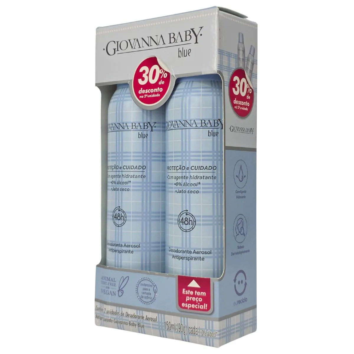 Kit 2 Desodorante Aerossol Blue 48H Vegano Giovanna Baby 150Ml / 90G Cada