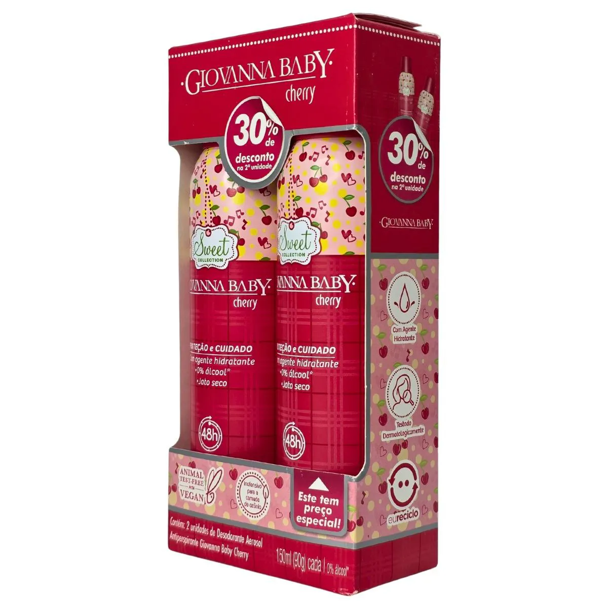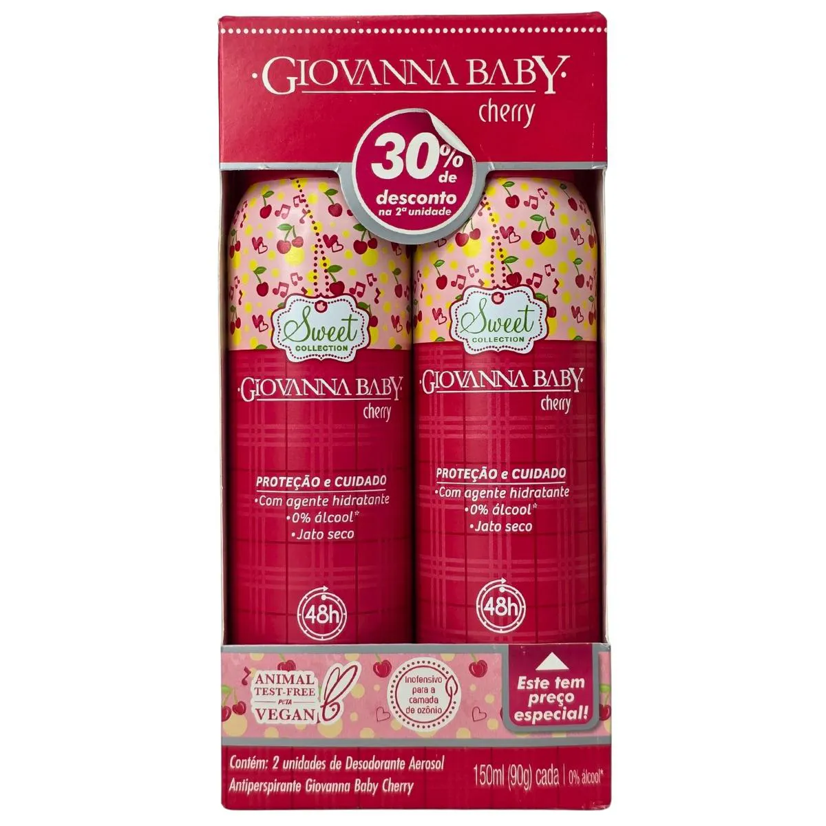 Kit 2 Desodorante Aerossol Cherry 48H Vegano Giovanna Baby 150Ml / 90G Cada