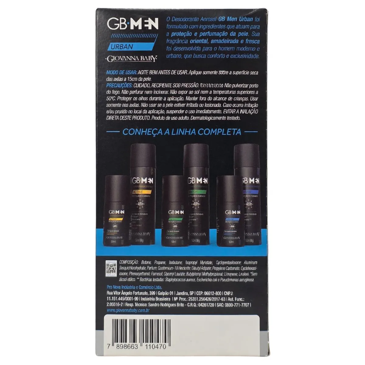 Finalidade: O Desodorante Aerossol GB Men Urban foi especialmente formulado com ingredientes que atuam para proteção e perfumação da pele. Sua fragrância oriental, amadeirada e fresca foi especialmente criada para o homem moderno e urbano, que busca conforto e exclusividade.