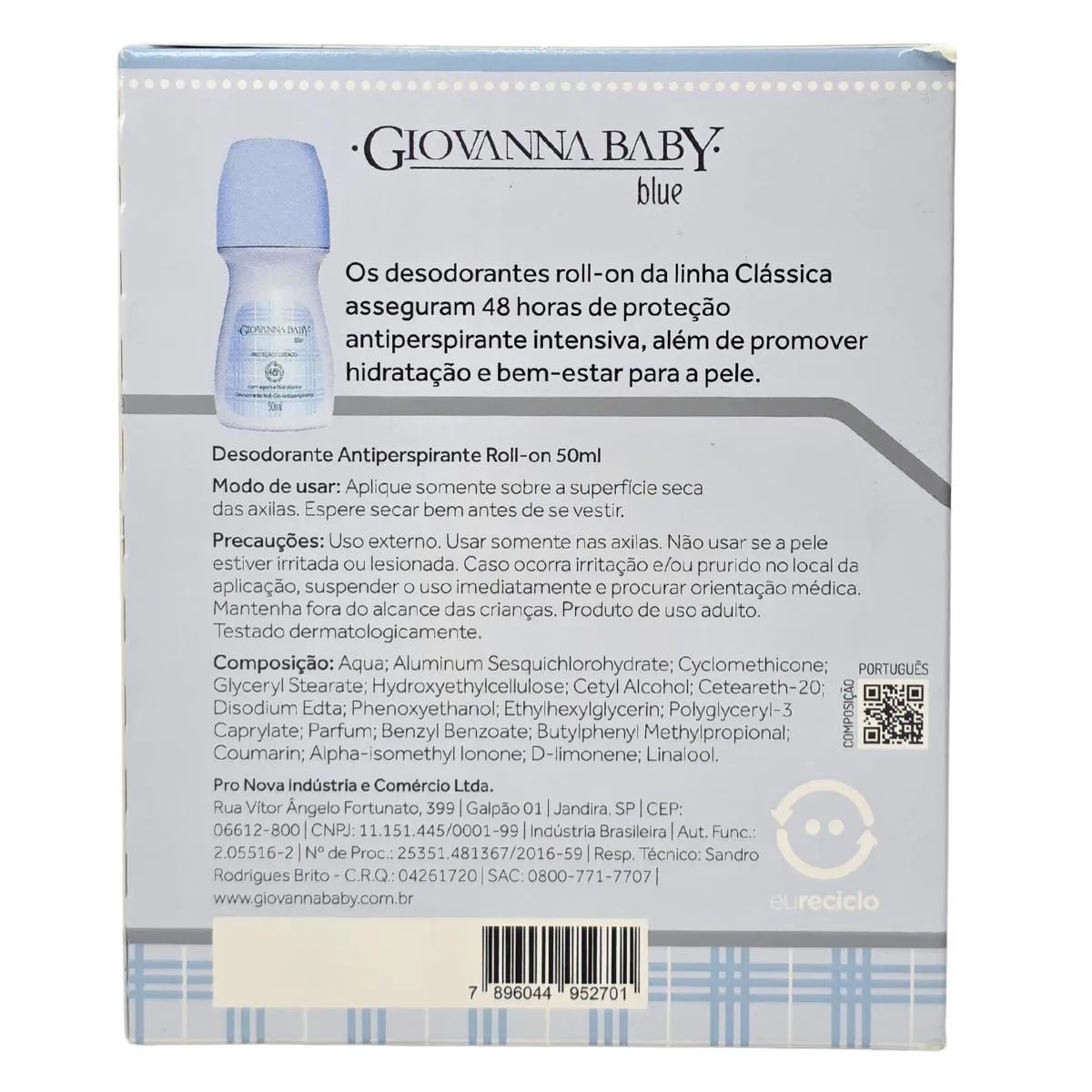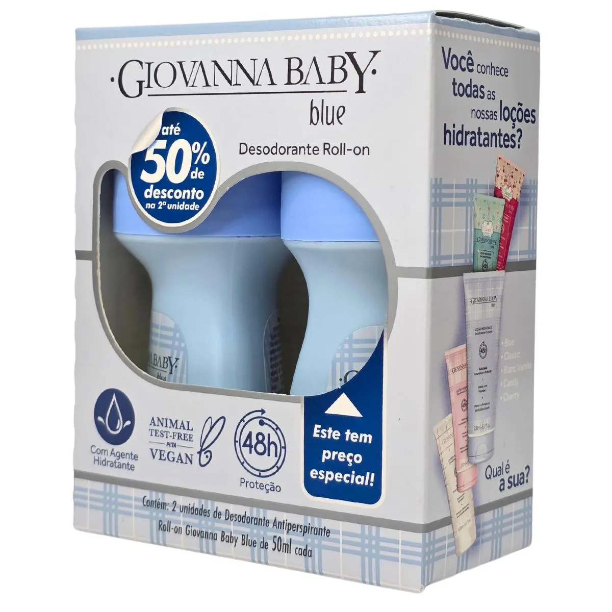 Kit 2 Desodorante Roll-On Blue 48H Vegano Giovanna Baby 50Ml Cada