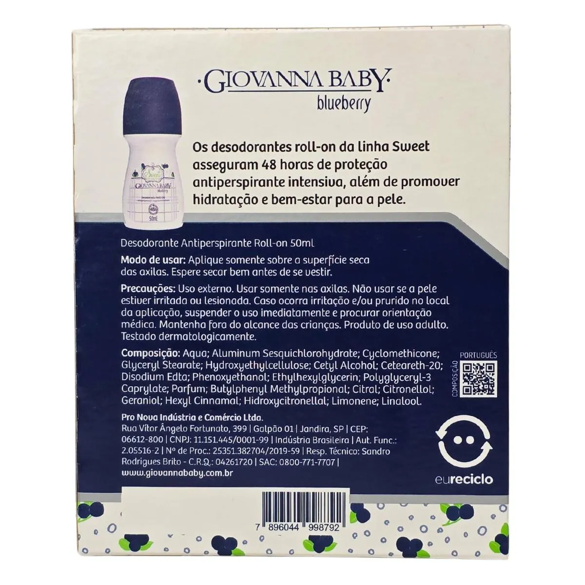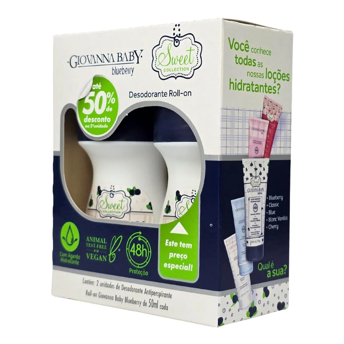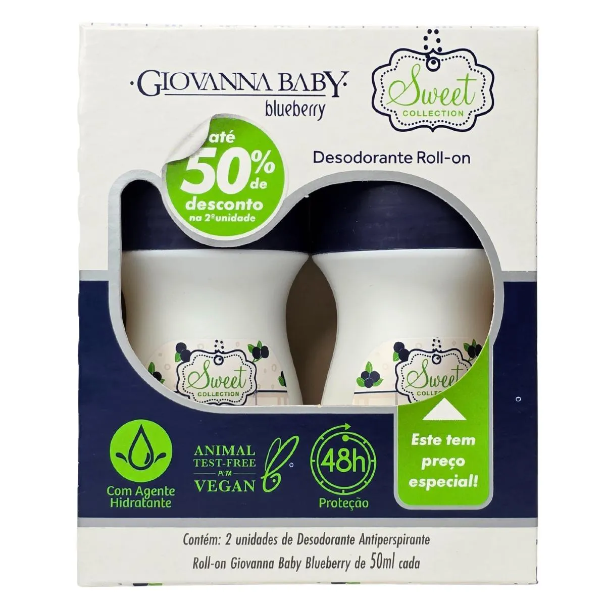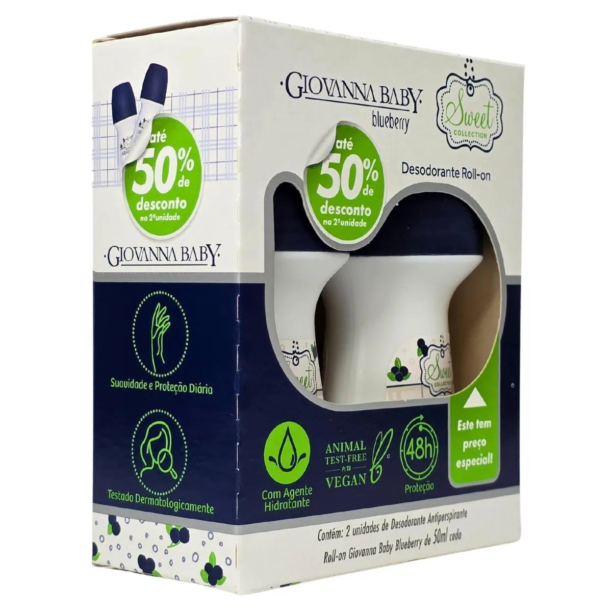 Kit 2 Desodorante Roll-On Blueberry 48H Vegano Giovanna Baby 50Ml Cada