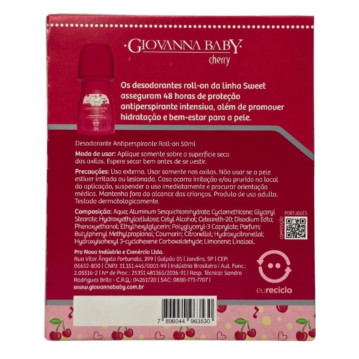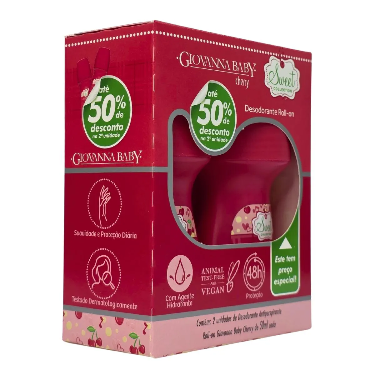 Kit 2 Desodorante Roll-On Cherry 48H Vegano Giovanna Baby 50Ml Cada
