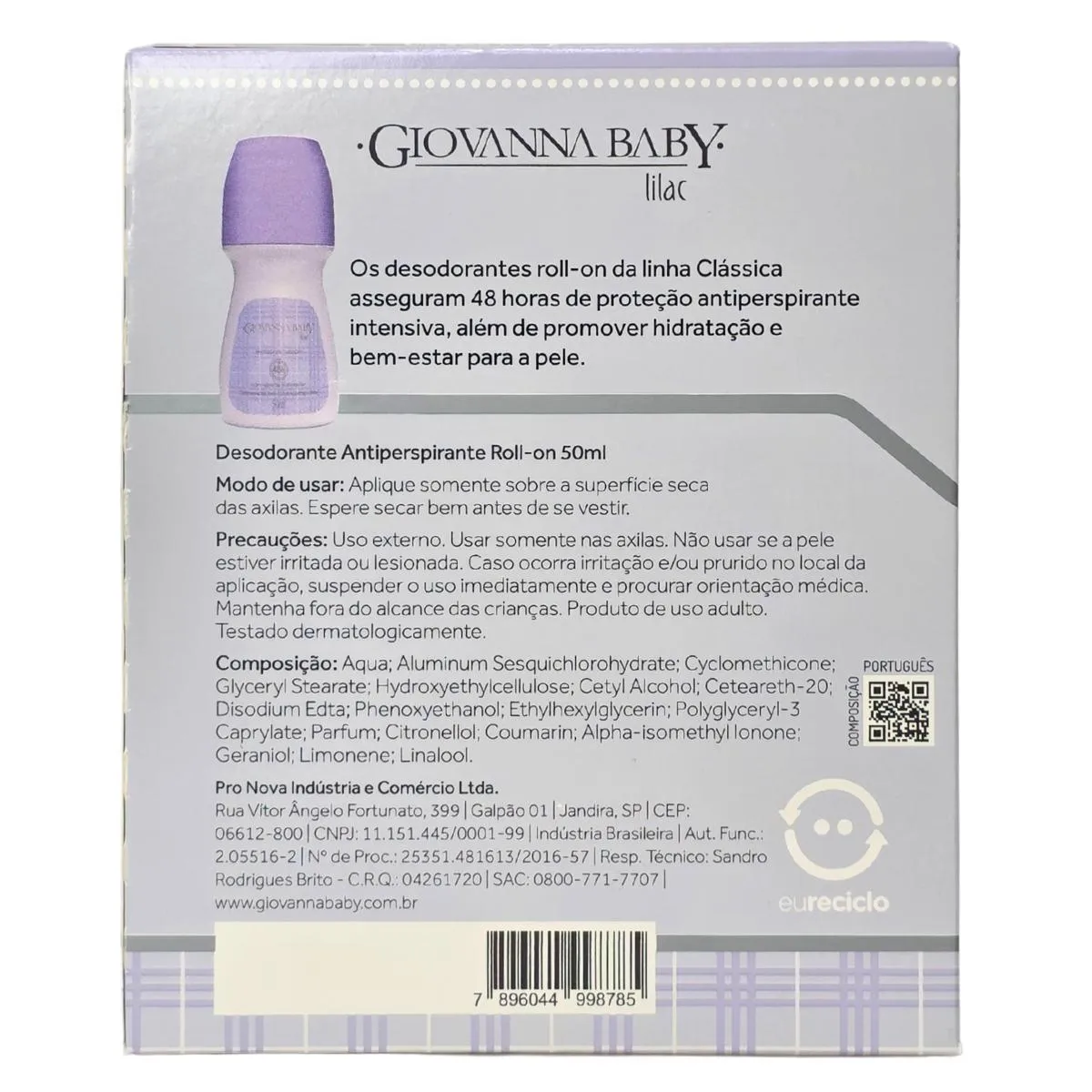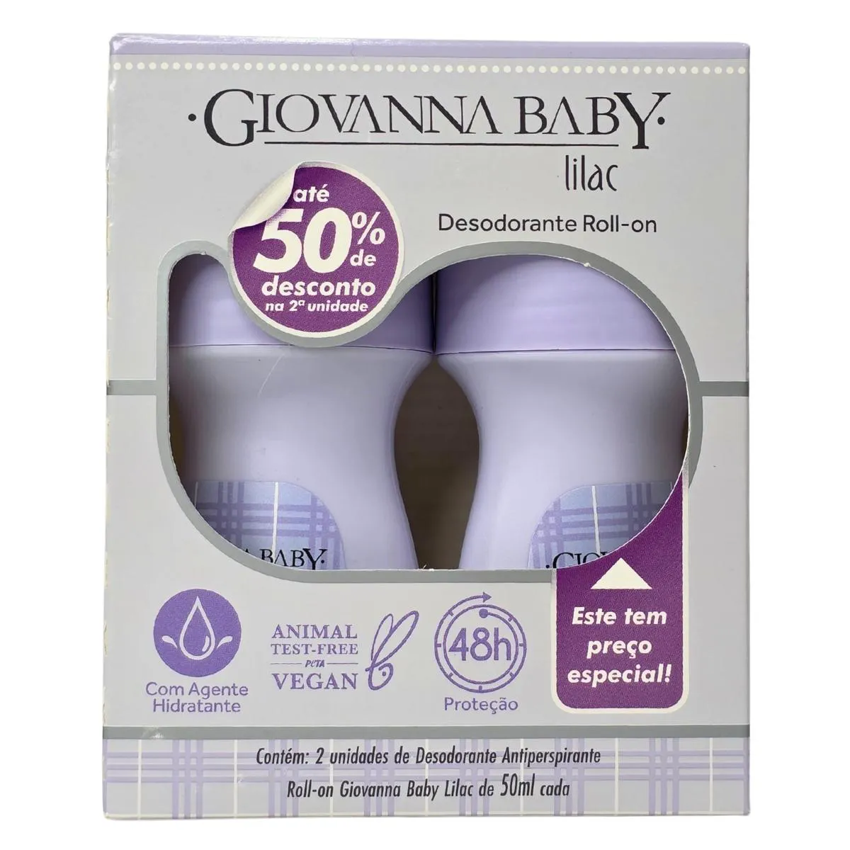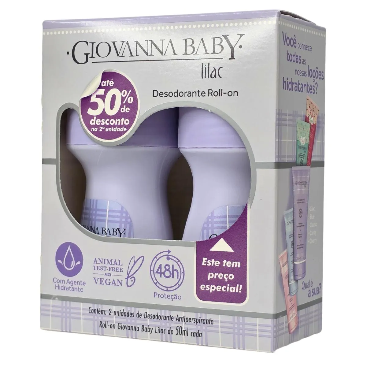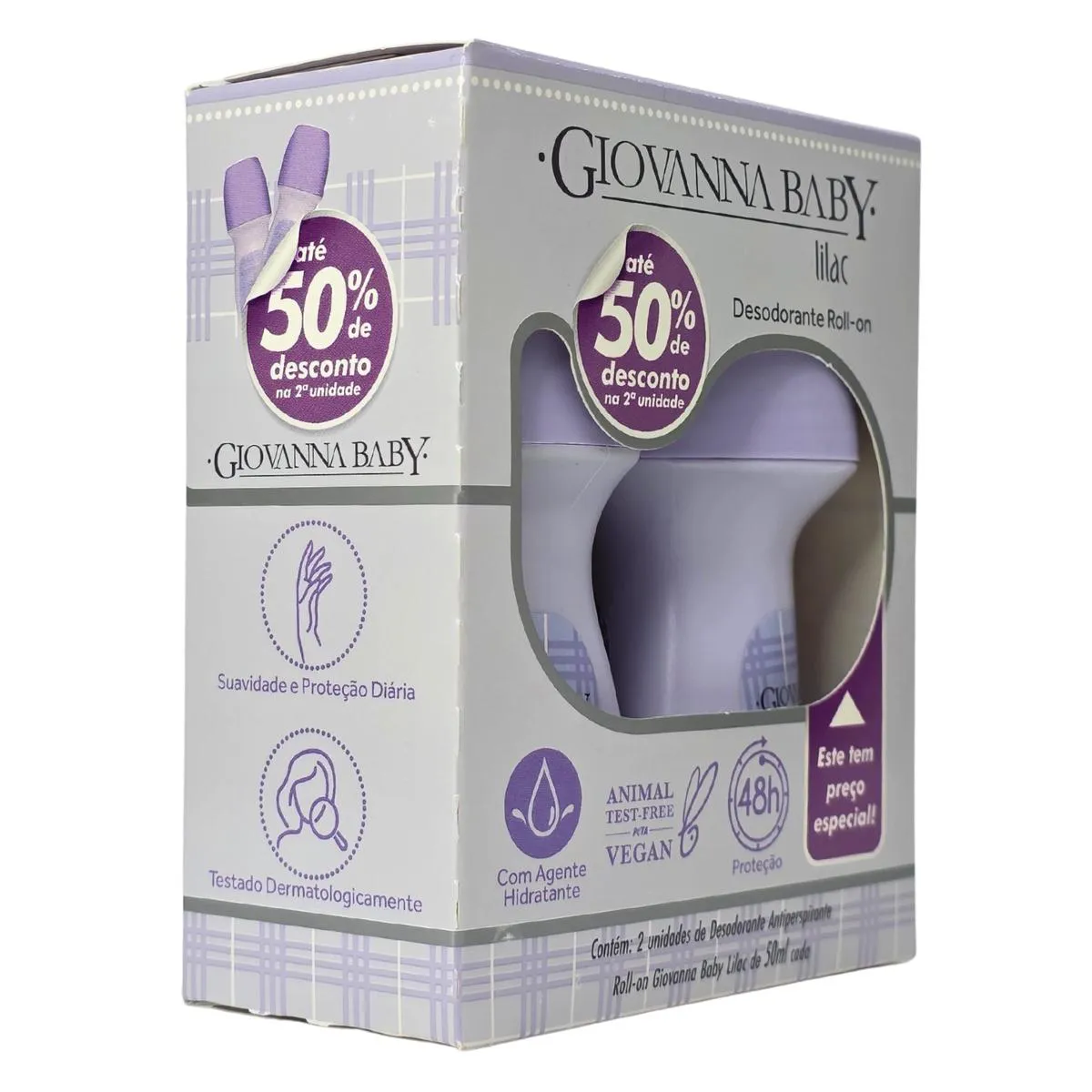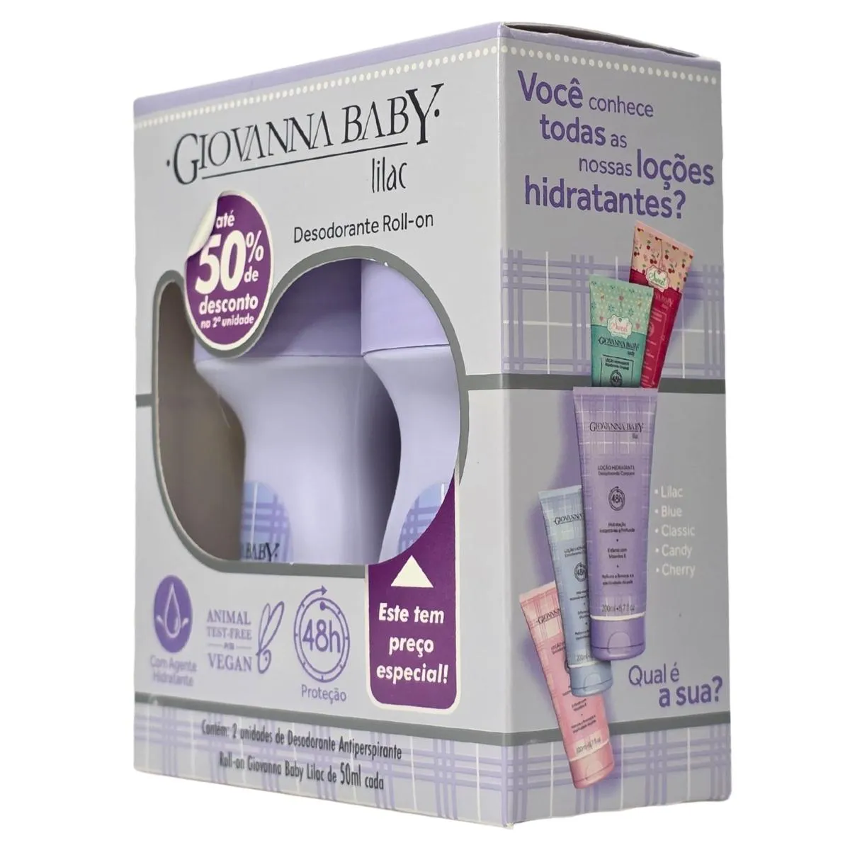 Kit 2 Desodorante Roll-On Lilac 48H Vegano Giovanna Baby 50Ml Cada