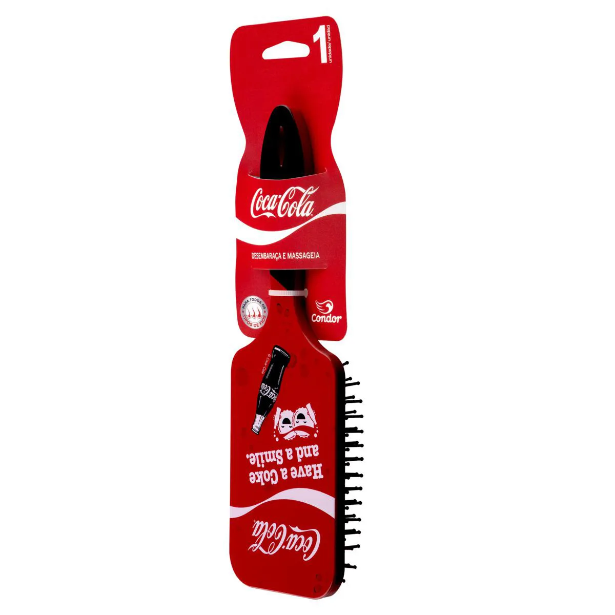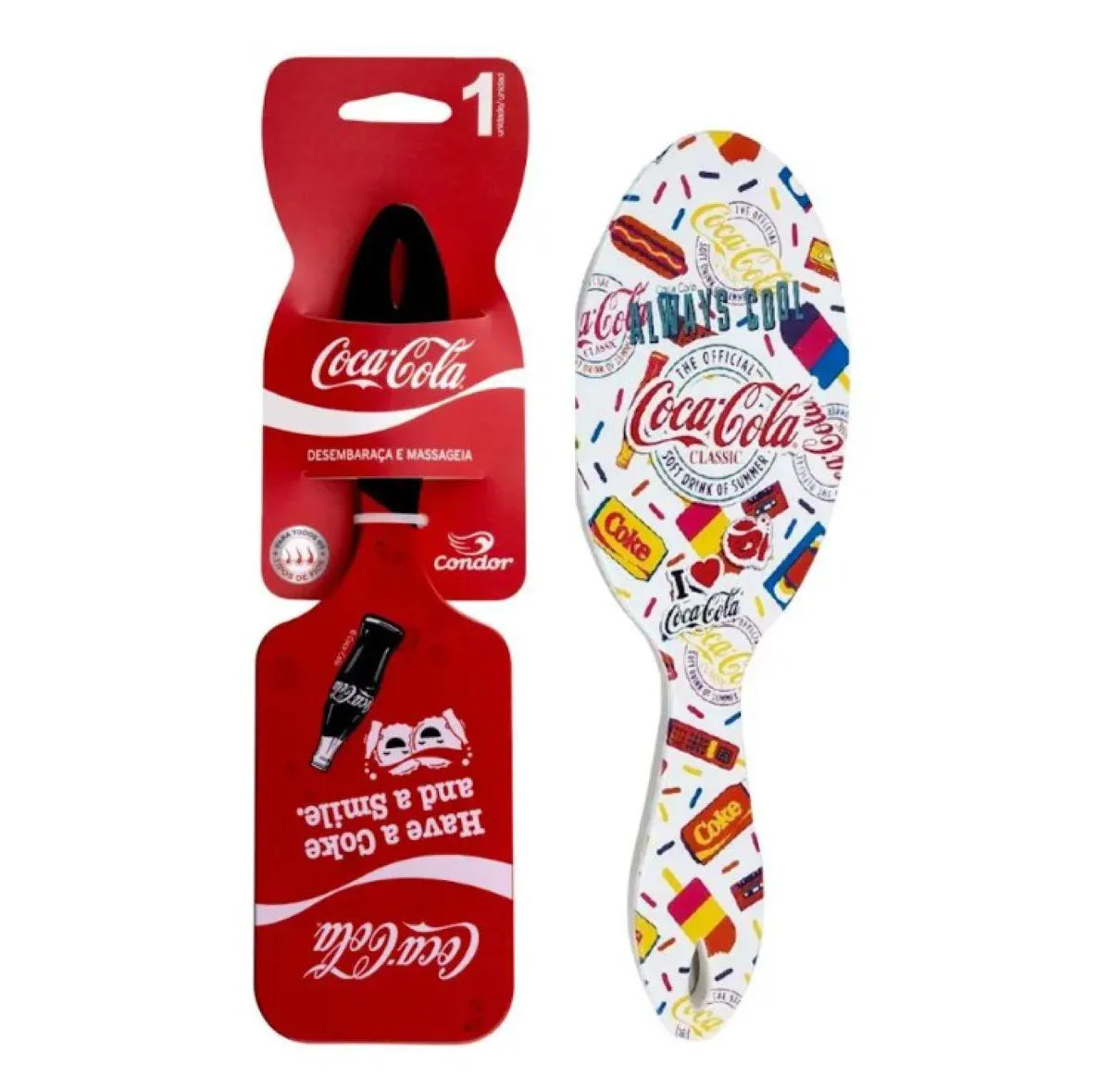 Condor e Coca-Cola se juntaram para atualizar as definições de fashion da sua rotina de cuidados diários! A escova raquete possui duas estampas atemporais super divertidas, que combinam tudo que o mundo Pop tem de melhor com a praticidade de uma escova almofada com pinos arredondados, que não machucam e massageiam o couro cabeludo, facilitando a escovação. Seu formato grande é ideal para todos os tipos de cabelo. A escova oval possui duas estampas atemporais super divertidas, que combinam tudo que o mundo Pop tem de melhor com a praticidade de uma escova almofada com pinos arredondados, que não machucam e massageiam o couro cabeludo, facilitando a escovação. Seu formato oval é ideal para levar na bolsa e manter os cabelos maravilhosos em todos os lugares.