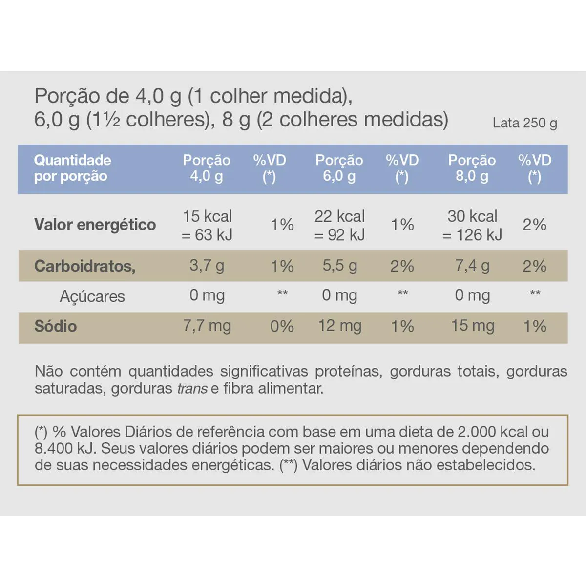 - Pode ser adicionado em alimentos e bebidas quentes ou frias.