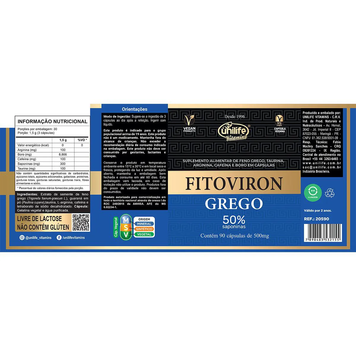 Kit 2 Fitoviron Grego Unilife 90 Cápsulas 500Mg