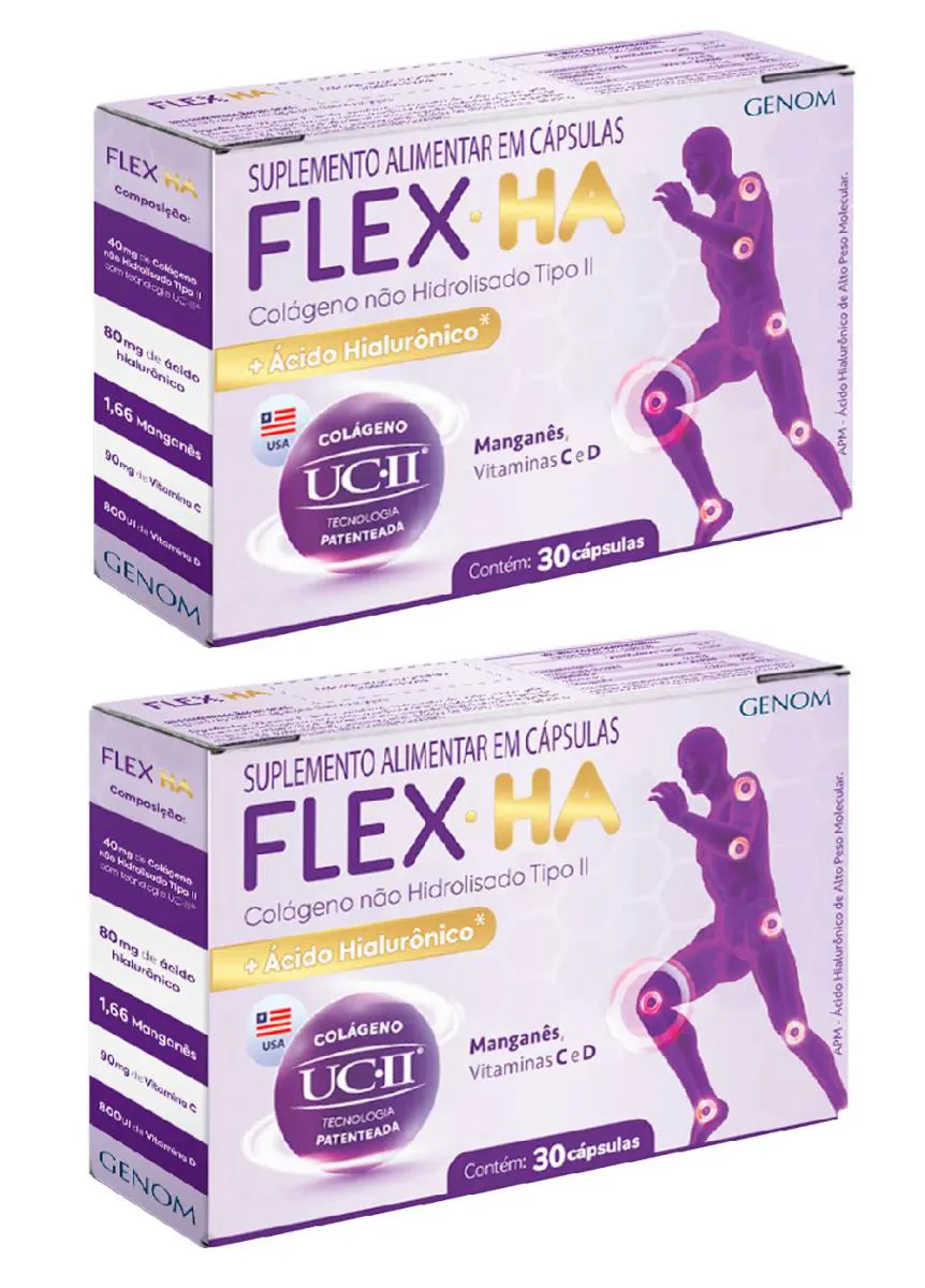 KIT 2 Suplemento Alimentar FLEX-HA colágeno TIPO II 30 CÁPSULAS - GENOM