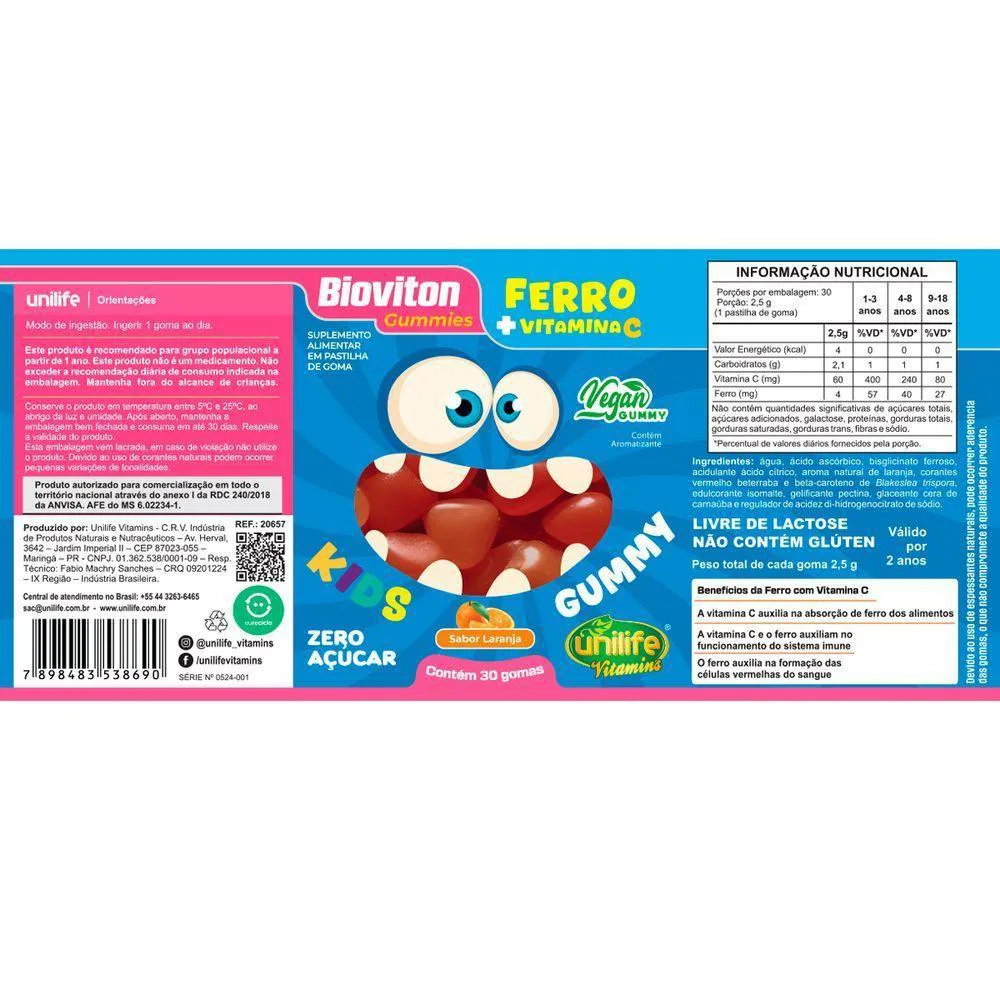 Kit 2 Gummy Kids Ferro + C Unilife 30 gomas Laranja