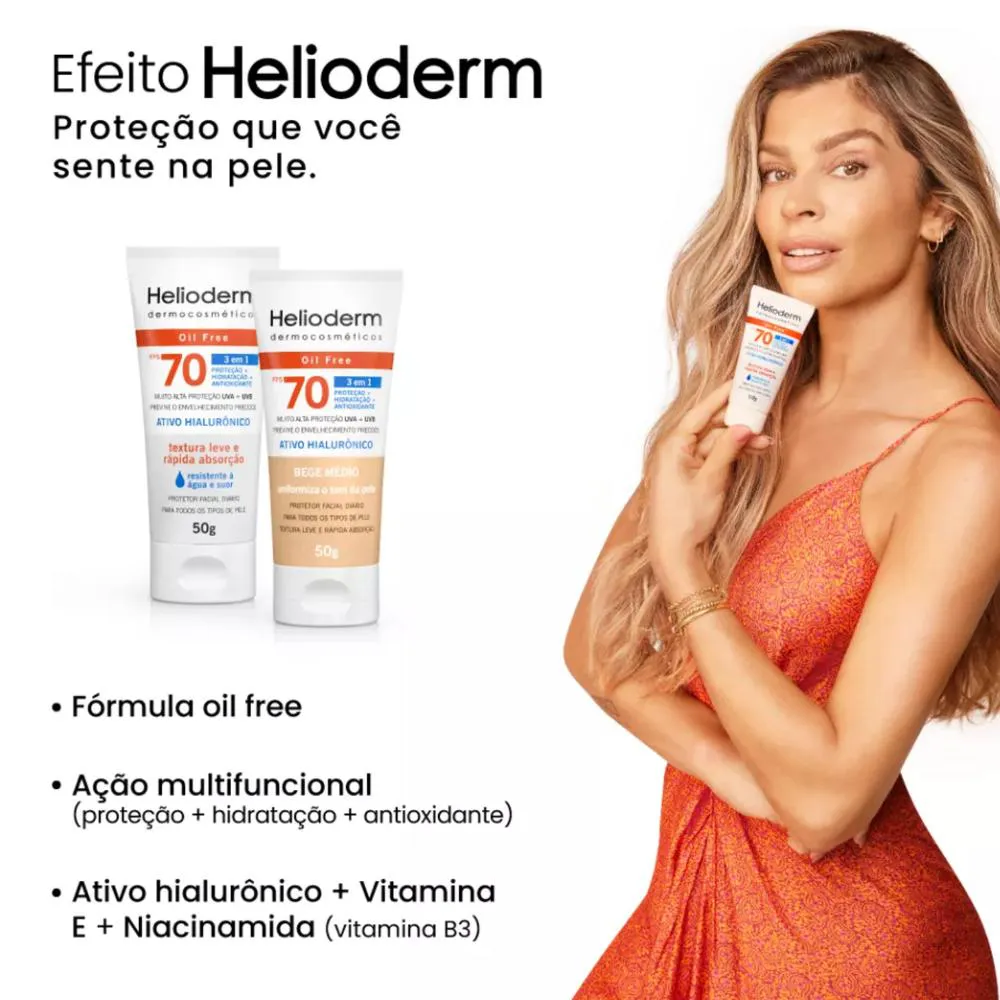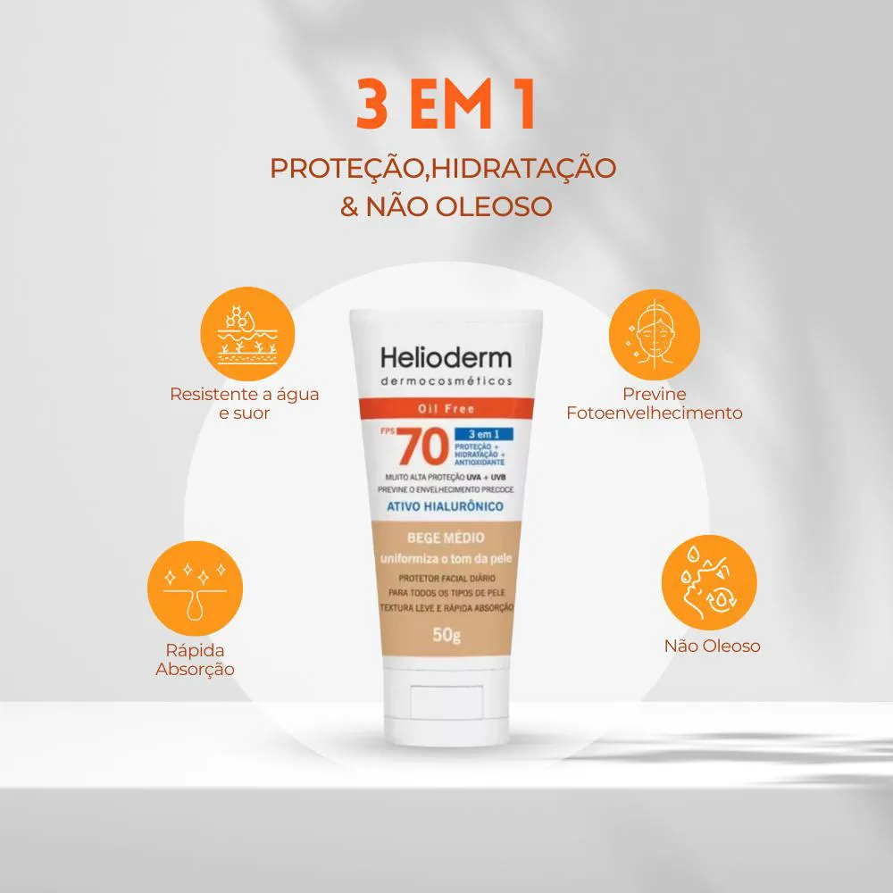 Kit 2 Heliodem Facial Fps70 Bege Médio 3.0 Oil Free - 50G - Kley Hertz