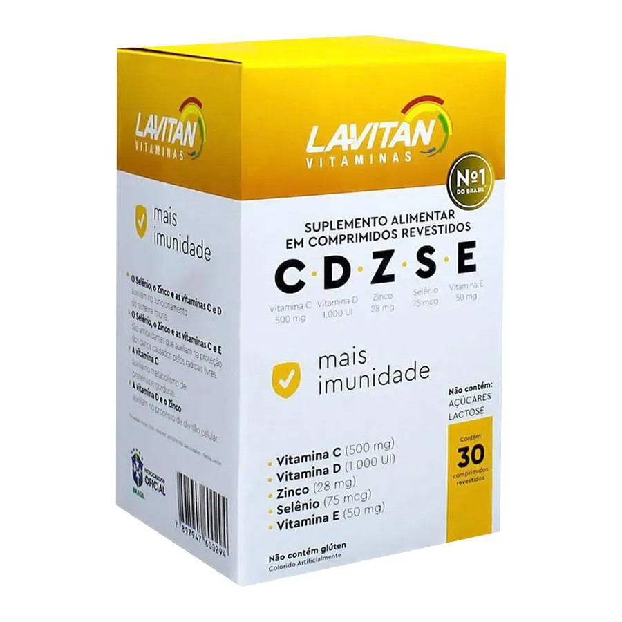 O Lavitan Vitaminas CDZSE Mais Imunidade Com 30 Comp da Cimed é um suplemento alimentar em comprimidos revestidos especialmente formulado para fortalecer o sistema imunológico. Sua poderosa combinação de Selênio, Zinco, vitamina c e vitamina d auxilia no funcionamento adequado do sistema imune, protegendo o organismo contra as ameaças diárias e combatendo os danos causados pelos radicais livres.