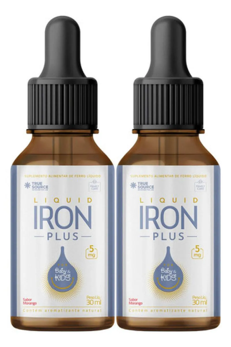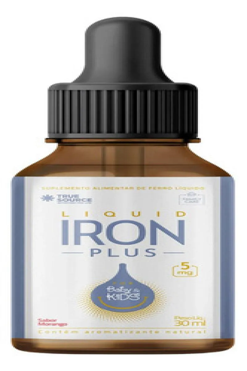 O Liquid Iron Plus da True Source é um suplemento líquido de ferro projetado para bebês, crianças e adolescentes, com 5mg de ferro por dose (em 5 gotas). Sua fórmula utiliza a tecnologia Lipofer® para promover alta absorção, com sabor natural de morango e sem sabor metálico. É formulado sem corantes artificiais, sem glúten e sem açúcares adicionados.Ele é promovido como apoio à formação de células vermelhas do sangue, energia e sistema imunológico.