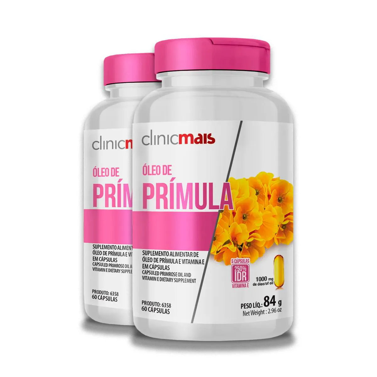 Kit 2 Óleo de Prímula 1000mg ClinicMais 60 Cápsulas + Porta cápsulas Benefícios principais: