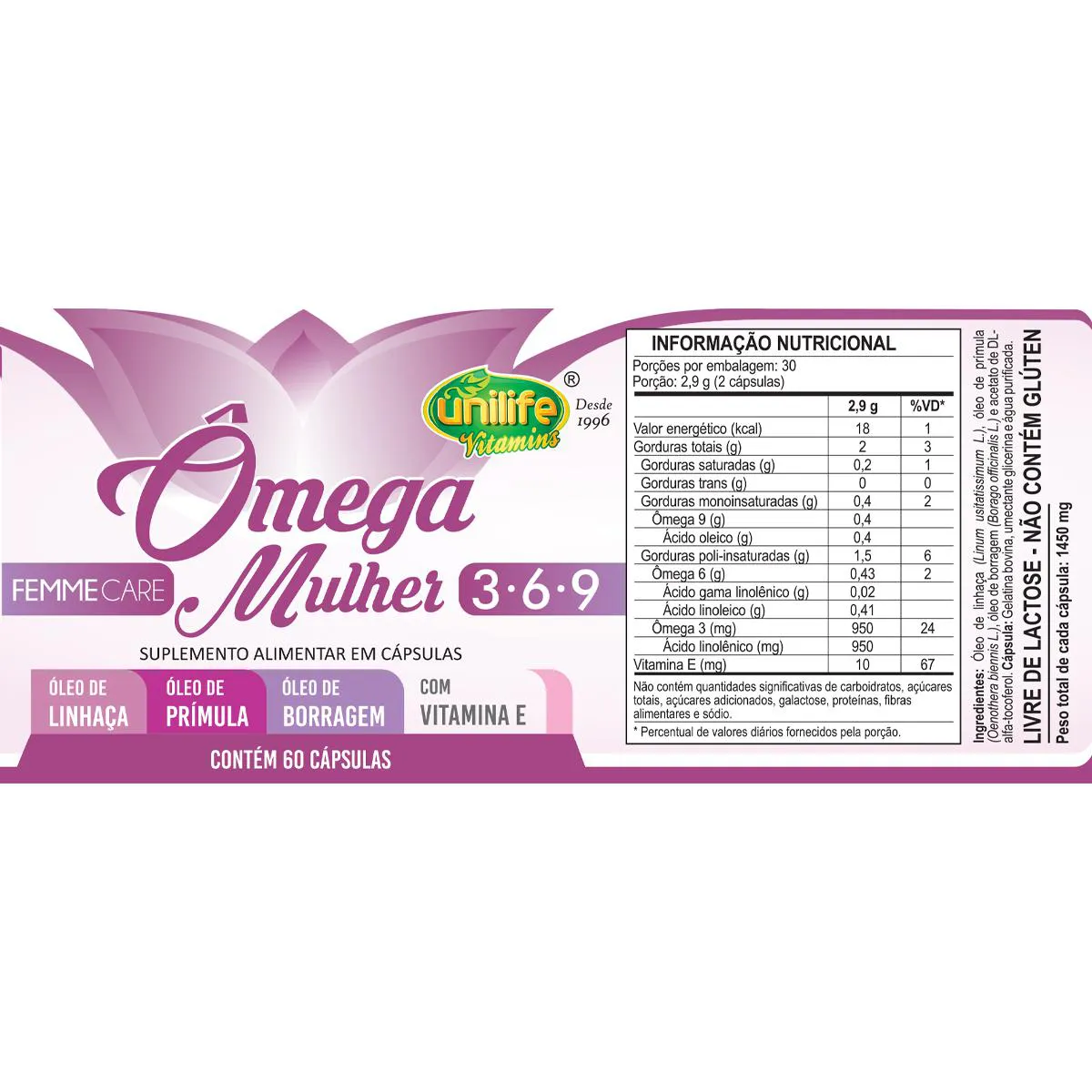- Composto por óleos de linhaça, prímula e borragem.