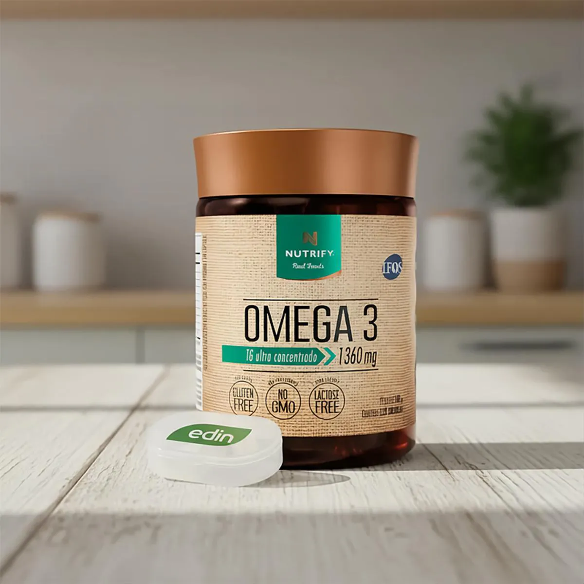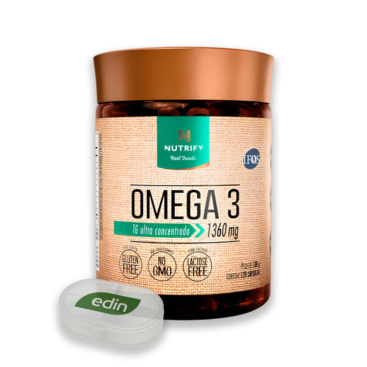 Kit 2 Ômega 3 TG Nutrify 120 Cápsulas + Porta Cápsulas O Ômega 3 TG Nutrify é um suplemento alimentar em cápsulas à base de óleo de peixe, fonte natural de ácidos graxos da família ômega 3. Produzido com padrão de qualidade e pureza controlada, possui cápsulas práticas para consumo diário. Características do produto: