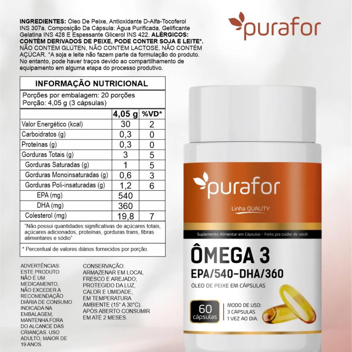 Kit 2 Ômega 3 Ultraconcentrado 1350Mg Epa Dha Óleo de Peixe Puro – 60 Cápsulas Purafor