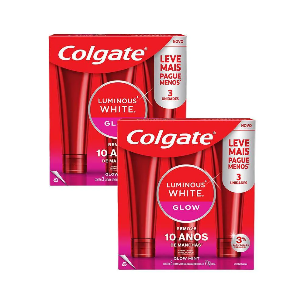 Kit 2 Pack Creme Dental para Clareamento Colgate Luminous White Glow 70G 3Un Cada