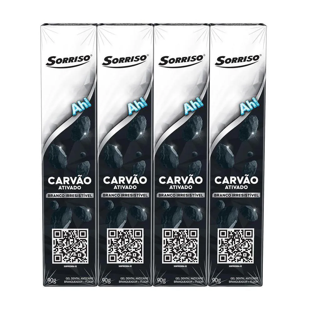 Kit 2 Pack Creme Dental Sorriso Carvão Ativado 90G 4Un Cada