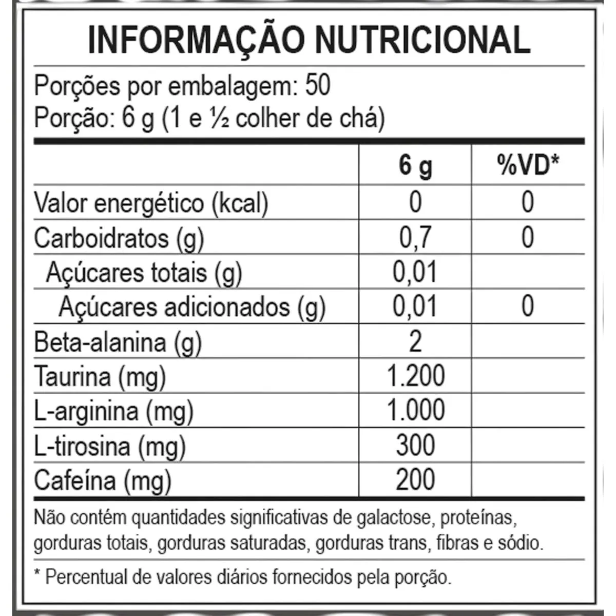 Aminoácidos essenciais: Presentes na fórmula. Cafeína: Ingrediente amplamente utilizado em diversas formulações. Fácil preparo: Rápida dissolução em água, ideal para consumo antes da atividade. Sabor refrescante de limão: Alternativa agradável para o dia a dia. Modo de consumo: