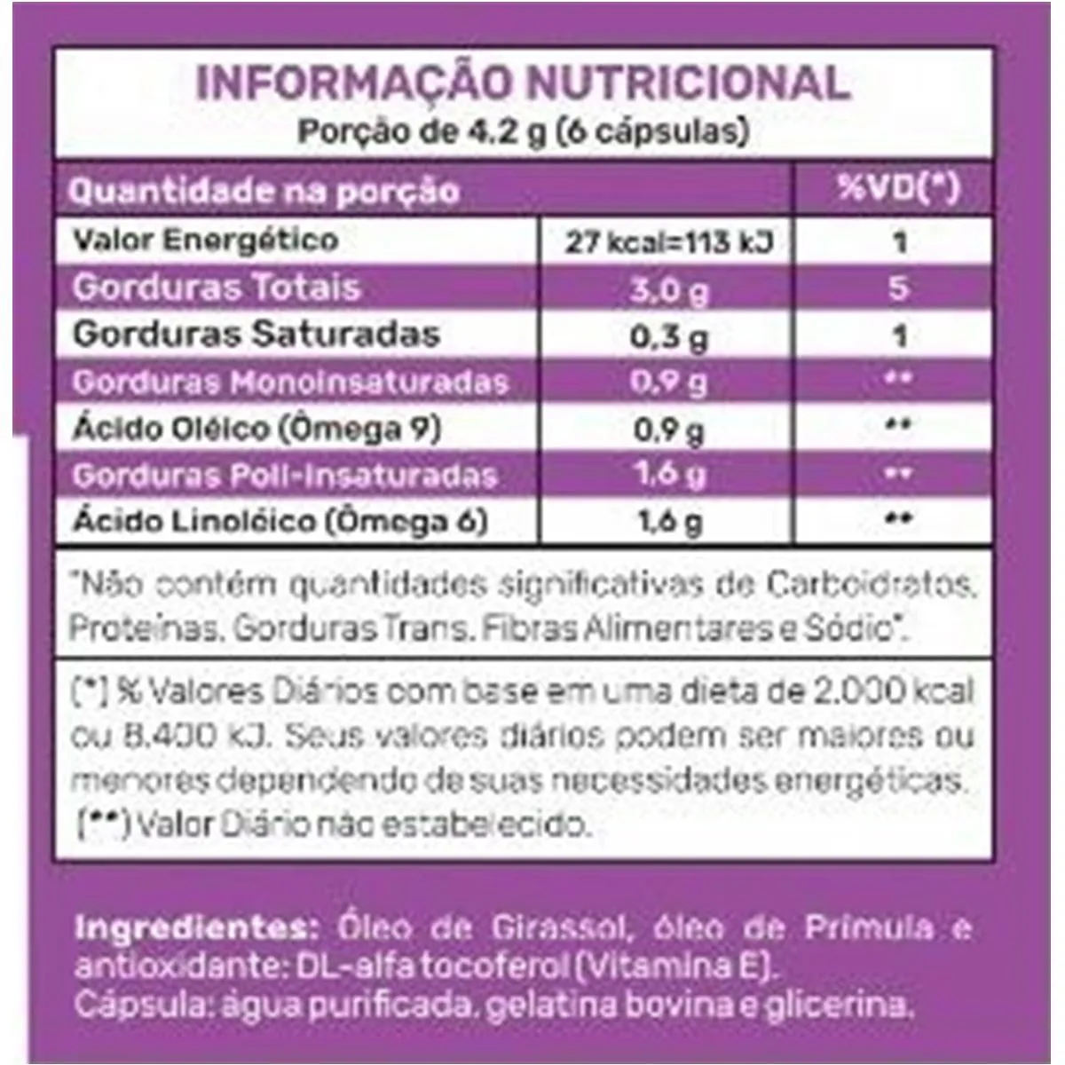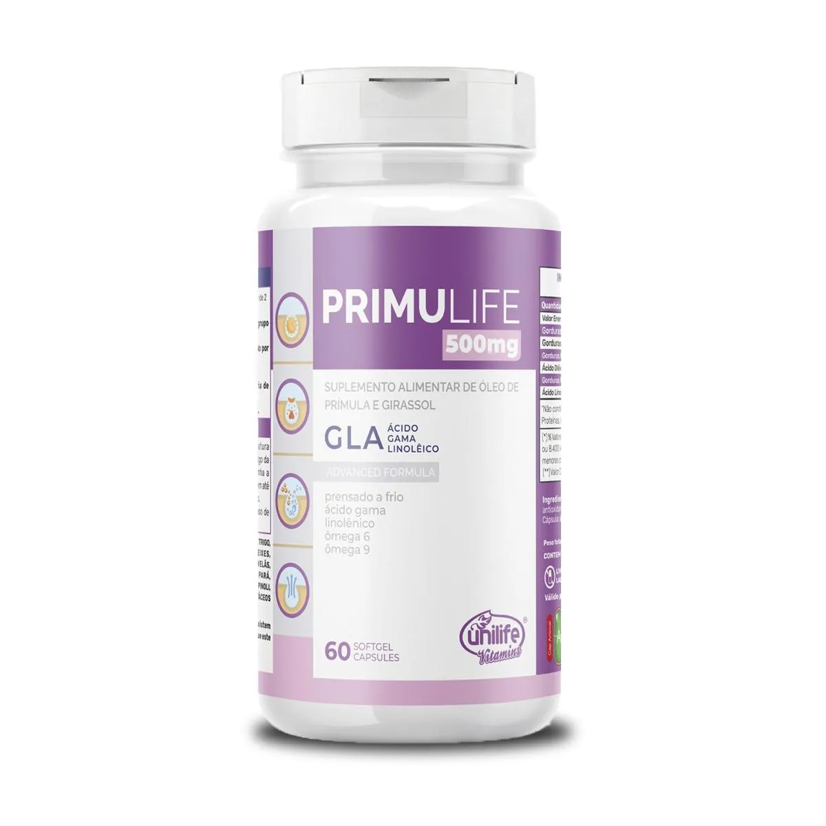O Primulife é um combinado de Óleo de Prímula e Girassol, fonte de GLA (Ácido gama-linolênico), sendo rico em em ômega 6 e 9, é importante para a constituição e manutenção da integridade das células e tecidos, além de auxiliar na redução dos sintomas relacionados ao período menstrual. Auxilia também na manutenção da hidratação e elasticidade da pele. Modo de usar