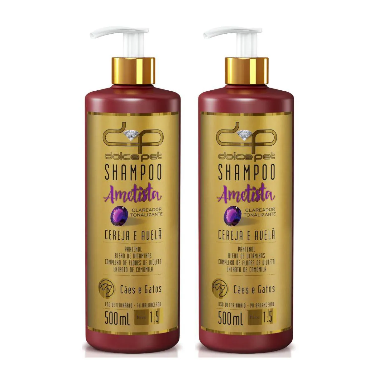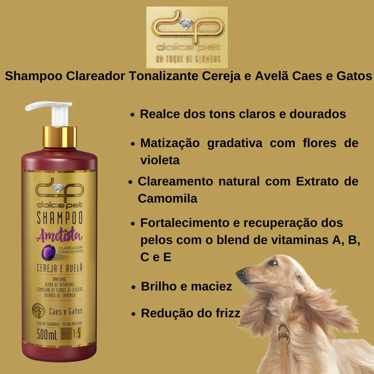 Kit 2 Shampoo Clareador Tonalizante Cereja e Avelã Dolce Pet Cães e Gatos - 500Ml