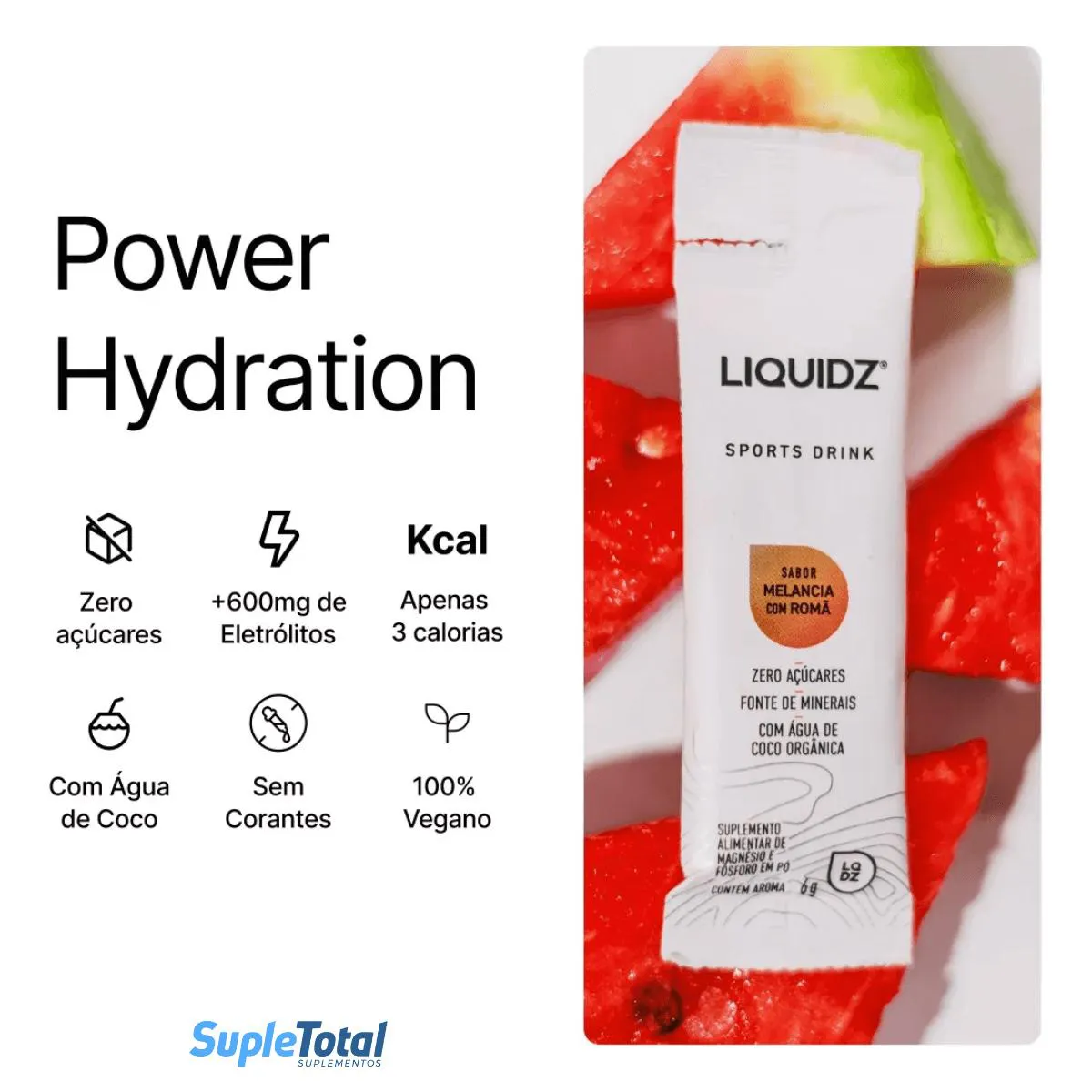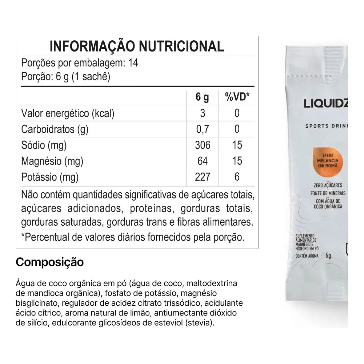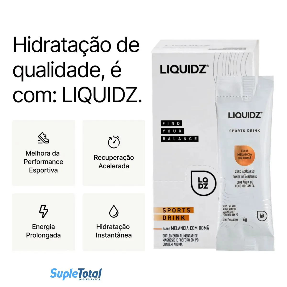 LIQUIDZ é uma solução de hidratação que combina os principais eletrólitos essenciais como sódio, potássio e magnésio. Esses minerais são fundamentais para manter a hidratação adequada, melhorar a função muscular e nervosa, e equilibrar o pH do corpo. LIQUIDZ é formulado para ser consumido diariamente, especialmente ao acordar, durante e após atividades físicas, para garantir uma hidratação eficiente e rápida.