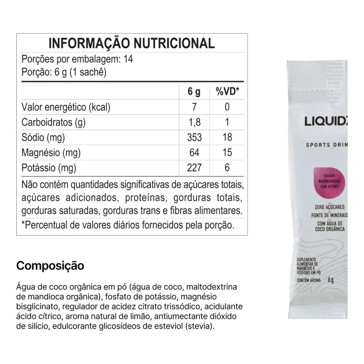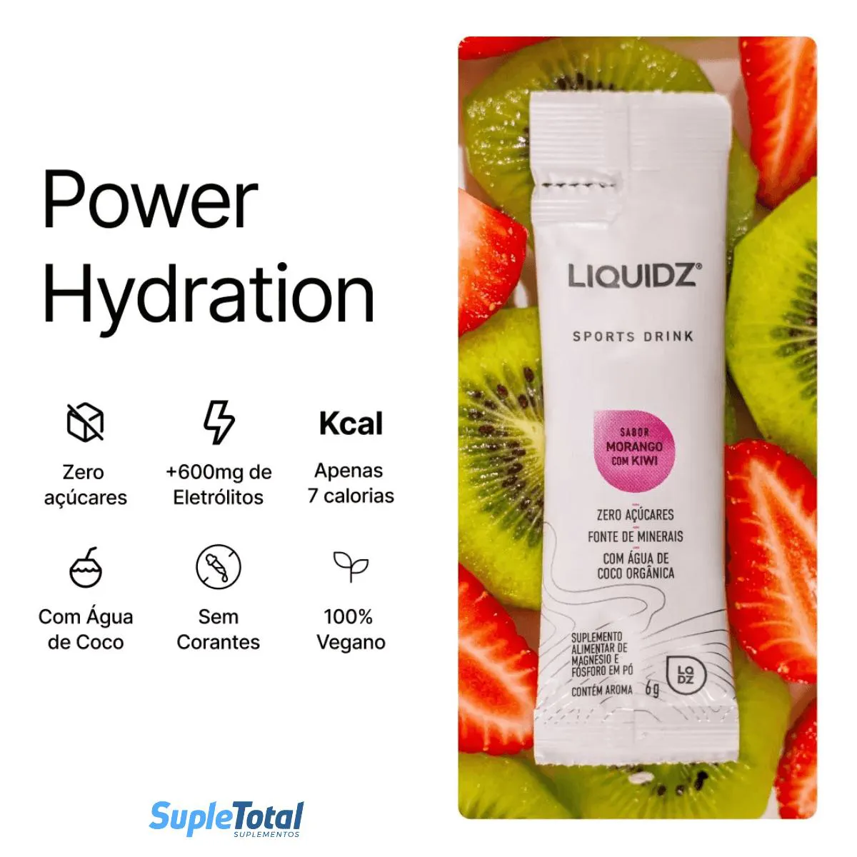 LIQUIDZ é uma solução de hidratação que combina os principais eletrólitos essenciais como sódio, potássio e magnésio. Esses minerais são fundamentais para manter a hidratação adequada, melhorar a função muscular e nervosa, e equilibrar o pH do corpo. LIQUIDZ é formulado para ser consumido diariamente, especialmente ao acordar, durante e após atividades físicas, para garantir uma hidratação eficiente e rápida.