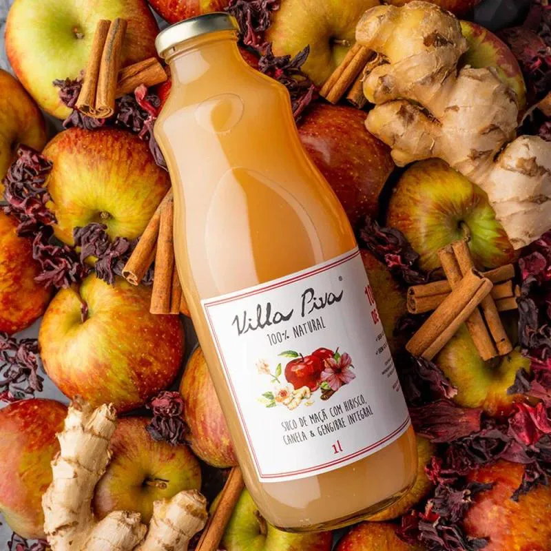 1 unidade: Suco de Maçã com Hibisco, Canela e Gengibre Sem Açúcar Villa Piva 1L