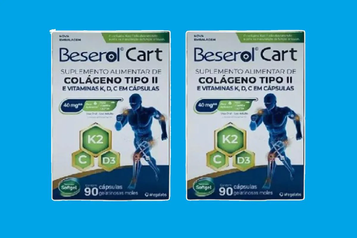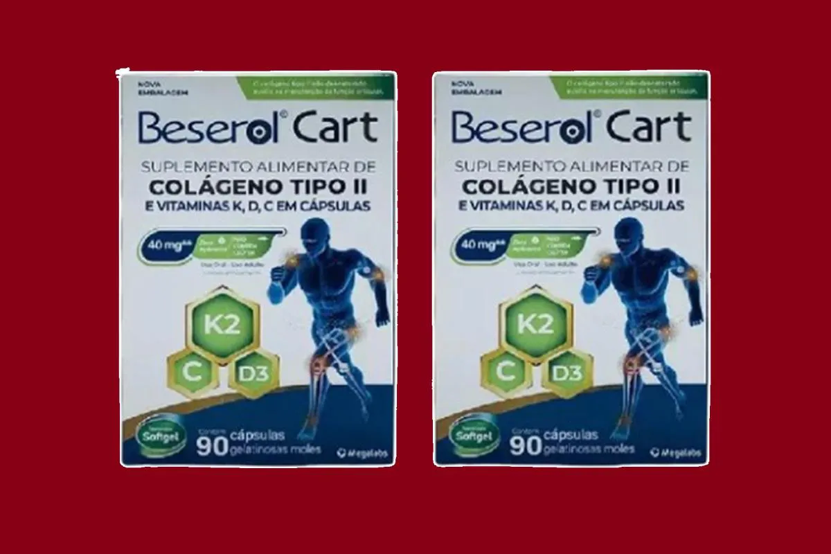 Kit 2 Sup Alimentar Beserol Cart colágeno Tipo 2 90 Cáps Beserol Cart é um suplemento alimentar de Colágeno Tipo 2 não hidrolisado, que auxilia na redução da inflamação das articulações.
