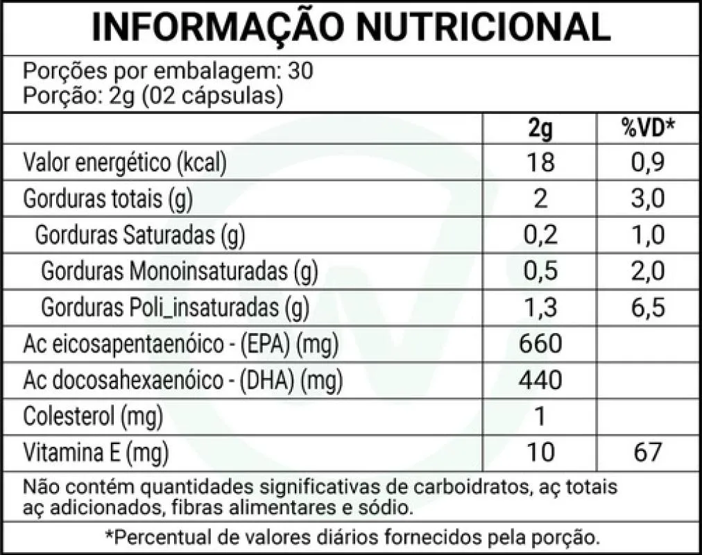 440mg de DHA (ácido docosahexaenóico). Sua formulação usa matéria-prima