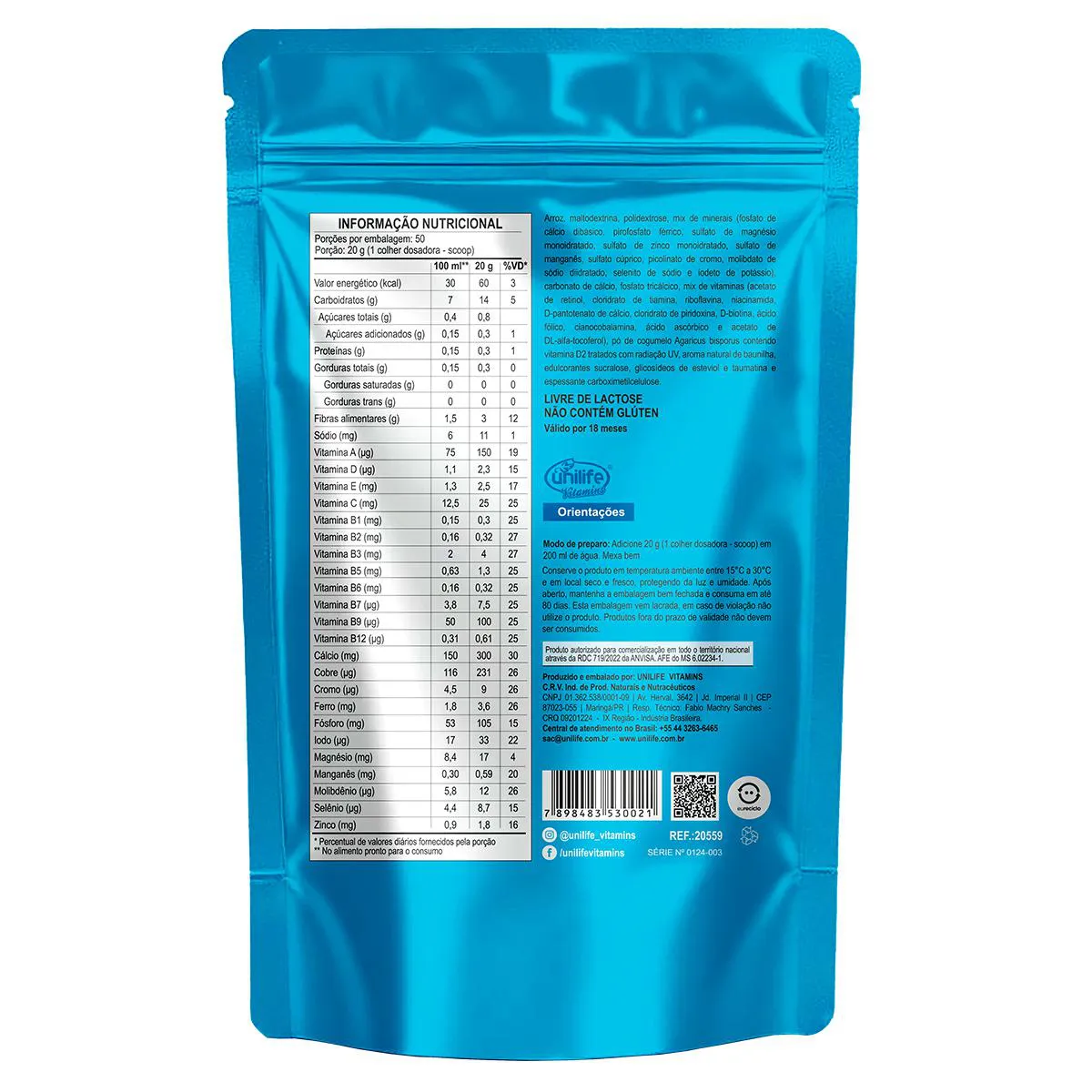 - Contém vitaminas e minerais adicionados.