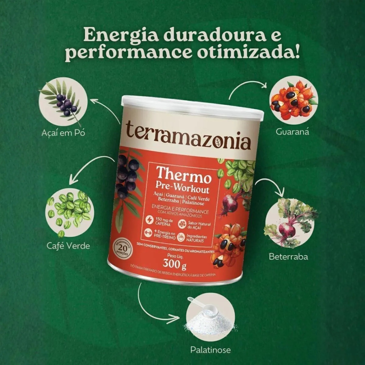 O Thermo Pre-Workout foi formulado para quem busca uma energia duradoura e performance otimizada durante os treinos.Com ingredientes naturais como açaí, guaraná, café verde, beterraba e palatinose, ele oferece um impulso extra para melhorar o desempenho, aumentar a resistência e otimizar o foco.