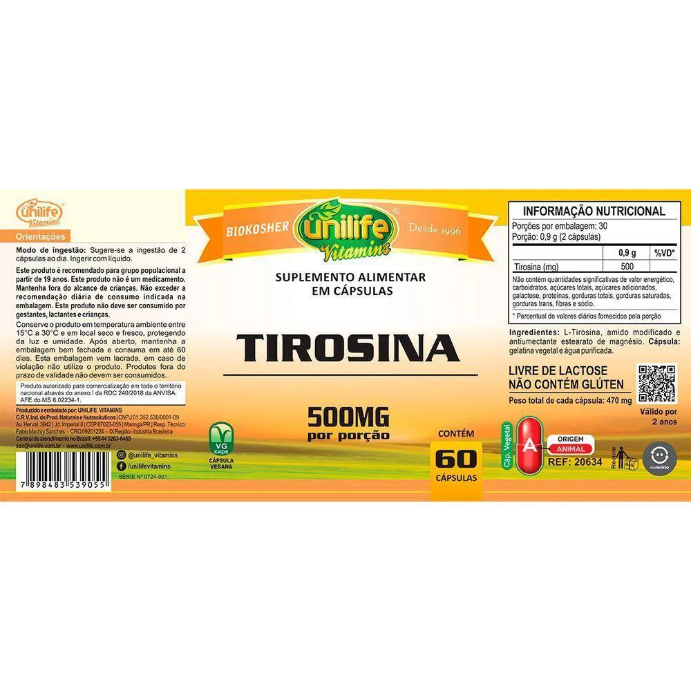 Kit 2 Tirosina Unilife 60 Cápsulas 470Mg