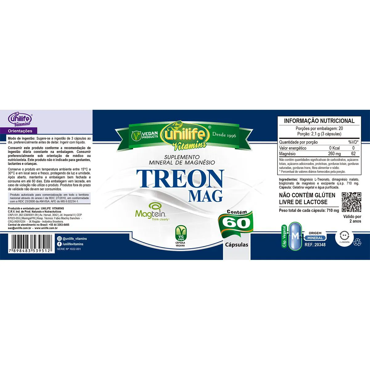 Kit 2 Treon Mag Magnésio Treonato Unilife 60 Cápsulas