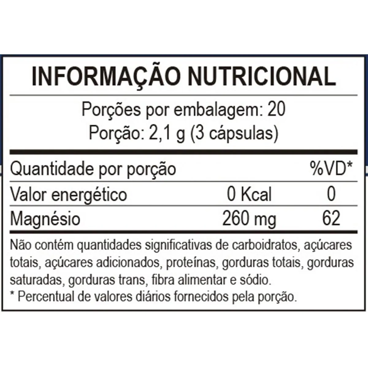 Ingredientes: magnésio l-treonato, magnésio dimalato, bisglicinato de magnésio e amido de milho. Cápsula: gelatina vegetariana e água. Peso total de cada cápsula: 710mg.